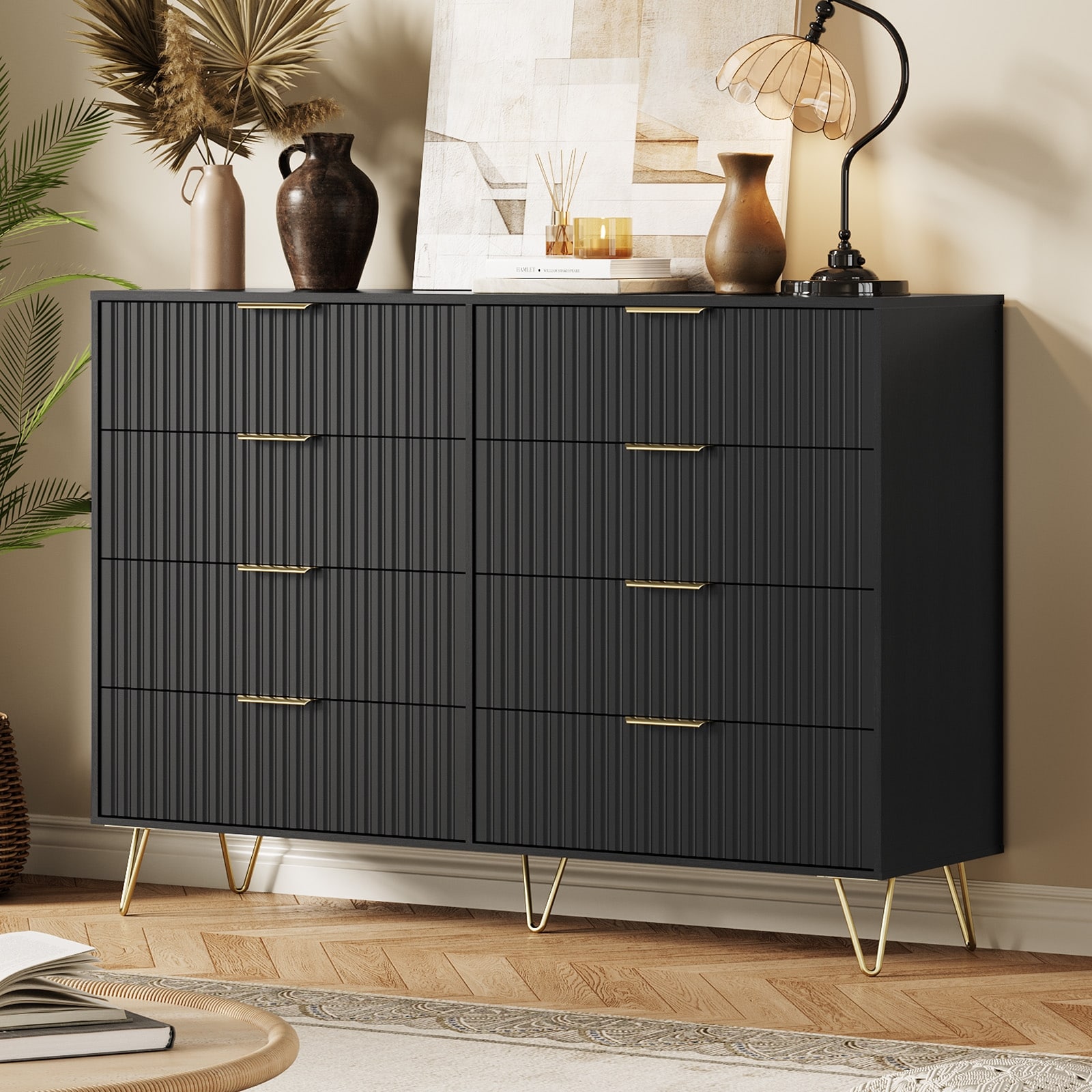 Fluted 8-Drawer Dresser for Bedroom, 55" Wide Modern Minimalist Chest of Wooden Drawers, Wide Clothes Storage Organizer