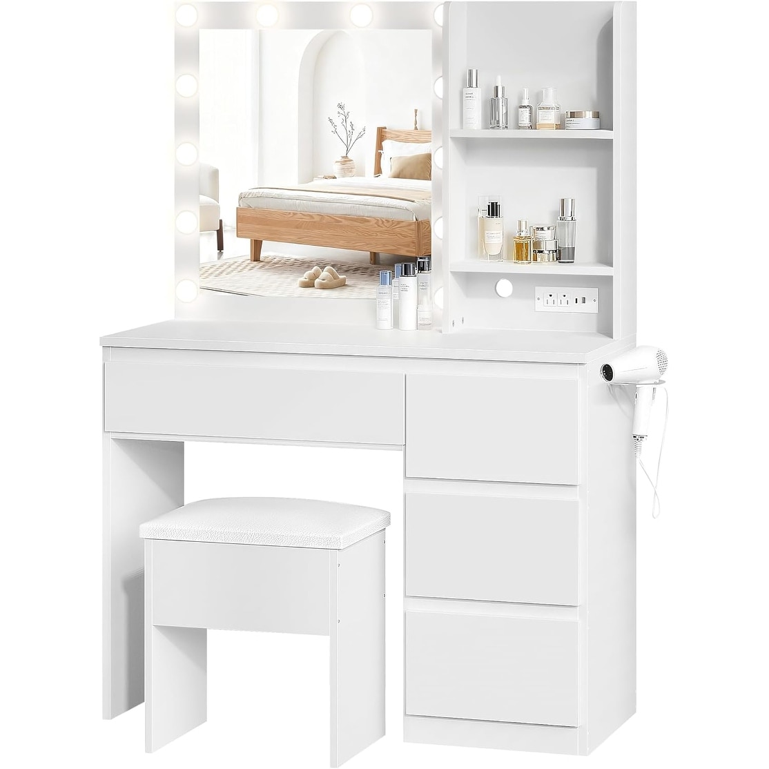 Bright LED Mirror with 3 Light Modes: This vanity desk features 12 LED bulbs with metal casings for enhanced durability and safety. Easily switch between warm, natural, and cool white lighting to match different makeup needs.