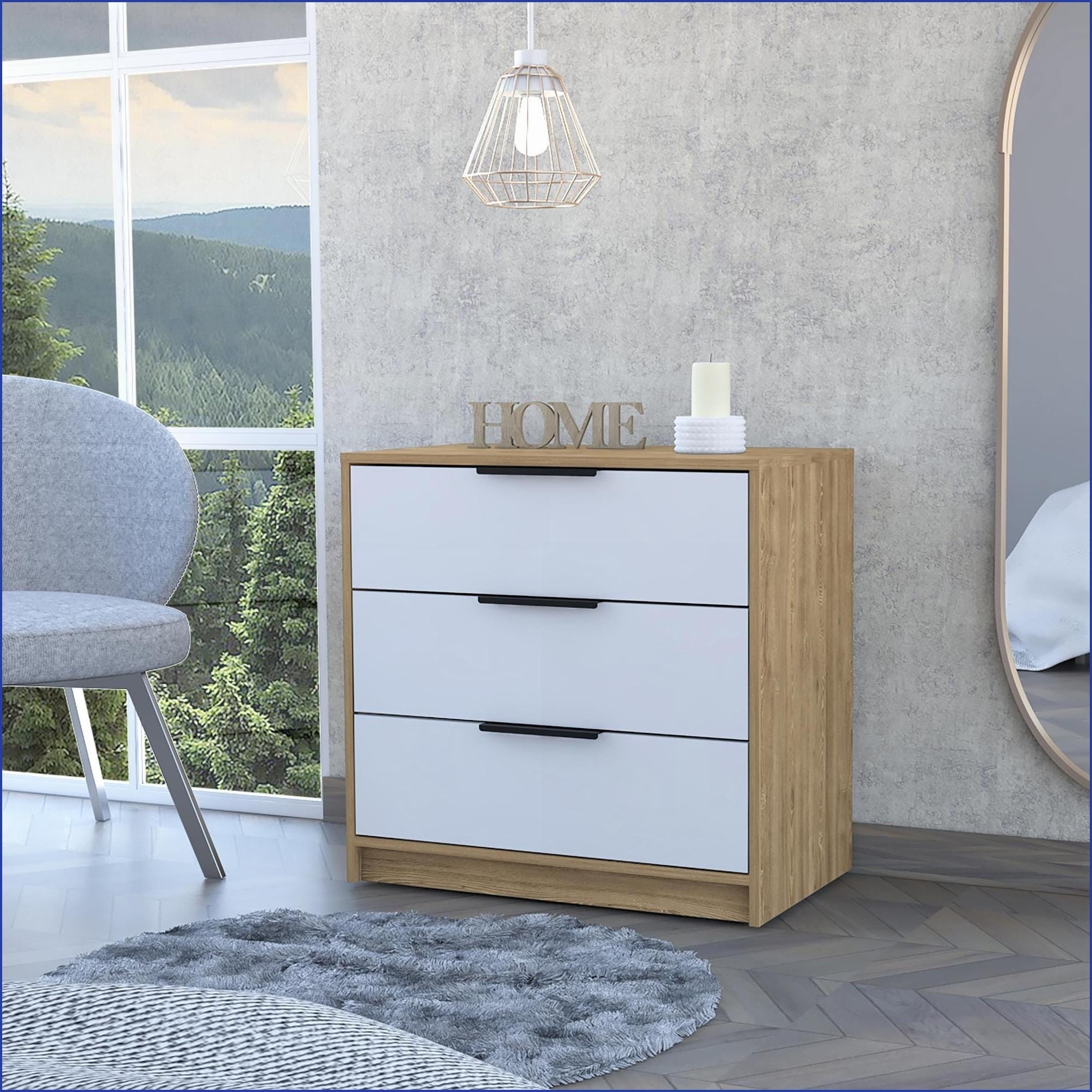 Dressers 3 Drawer White,Pine Finish, 27.5inW x27inH x16.3inD, Particle Board, Multicolor