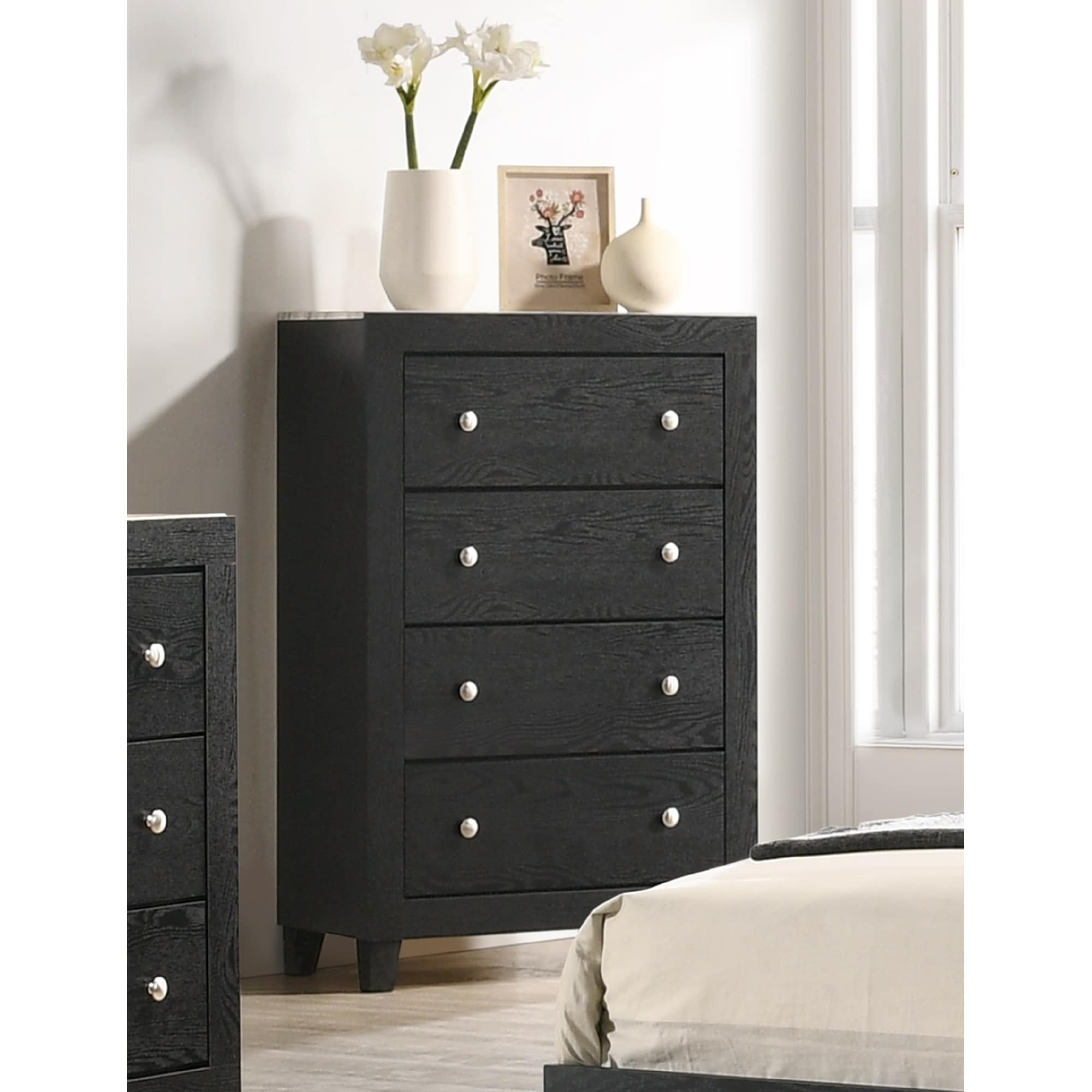 Modern Style Four Drawers Faux Marble Top Black Finish 1pc Chest Only