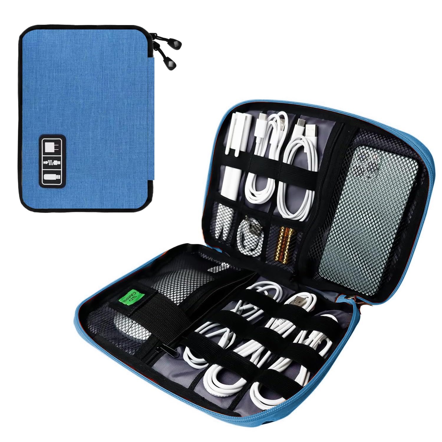 DOUBLE LAYERS: The electronics bag is designed with 2 Layers interior compartment, the upper compartment can be used to organize Cable, Charger, Cellphone, Flash Drive, Earbuds, the lower compartment can store Adapter, Hard Drive, Power Bank, Tablet Computer. The front pocket provide a easier way to