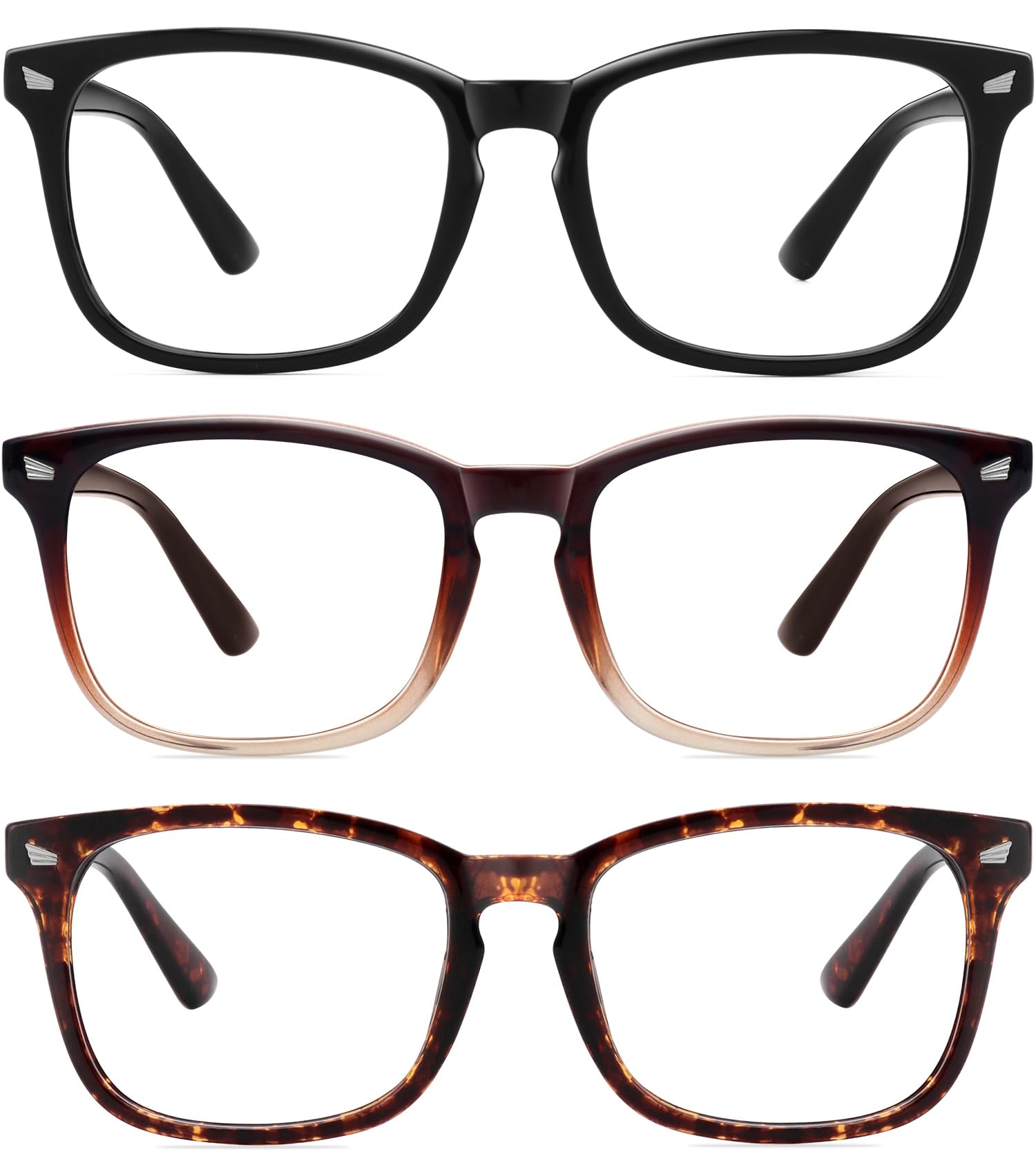 MEETSUN 3-Pack Blue Light Blocking Glasses, Anti Eye Strain Headache (Sleep Better), Computer Glasses UV400 Lens (Black + Brown Gradient +