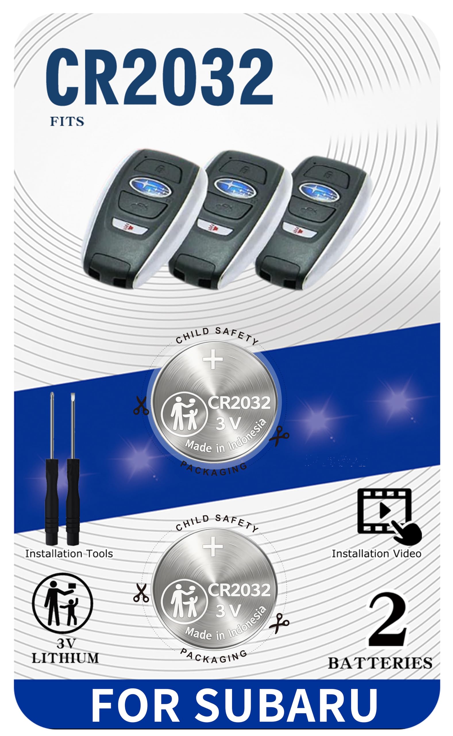 Pack Including: Two (2) Pieces CR2032 Remote Key Fob Batteries and Opening/Pry Tools - Five item bundle (total 5pcs), Please check Amazon details Confirmed Fit to ensure that this is the correct battery for your remote. Original Battery as Provided by Manufacturer. Compatible with 2015-2025 Subaru s