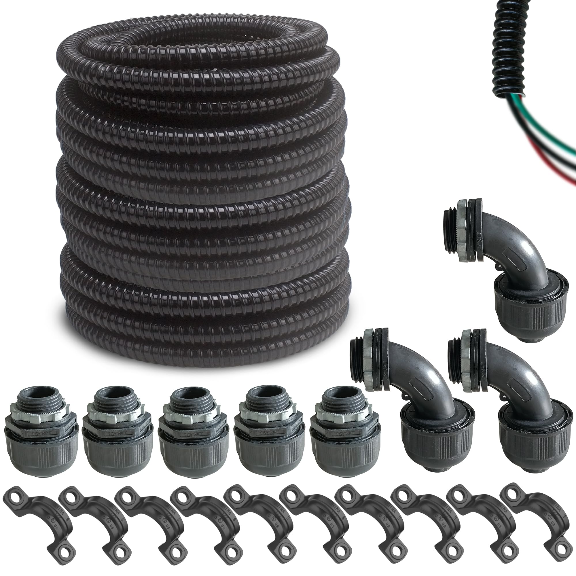 (1/2" Dia * 100 Feet) Yariwiz Black Special Extra Flexible Electrical Conduit Liquid Tight PVC Conduit Kit with 5 PCS Coupling, 5 PCS Elbow and 10 PCS