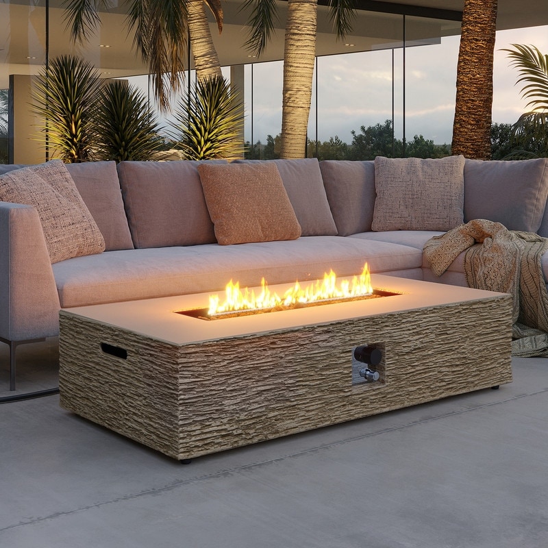 Patio Watcher 56in. Outdoor Rectangle Magnesium Oxide Fire Pit Table with Gas Tank Cover