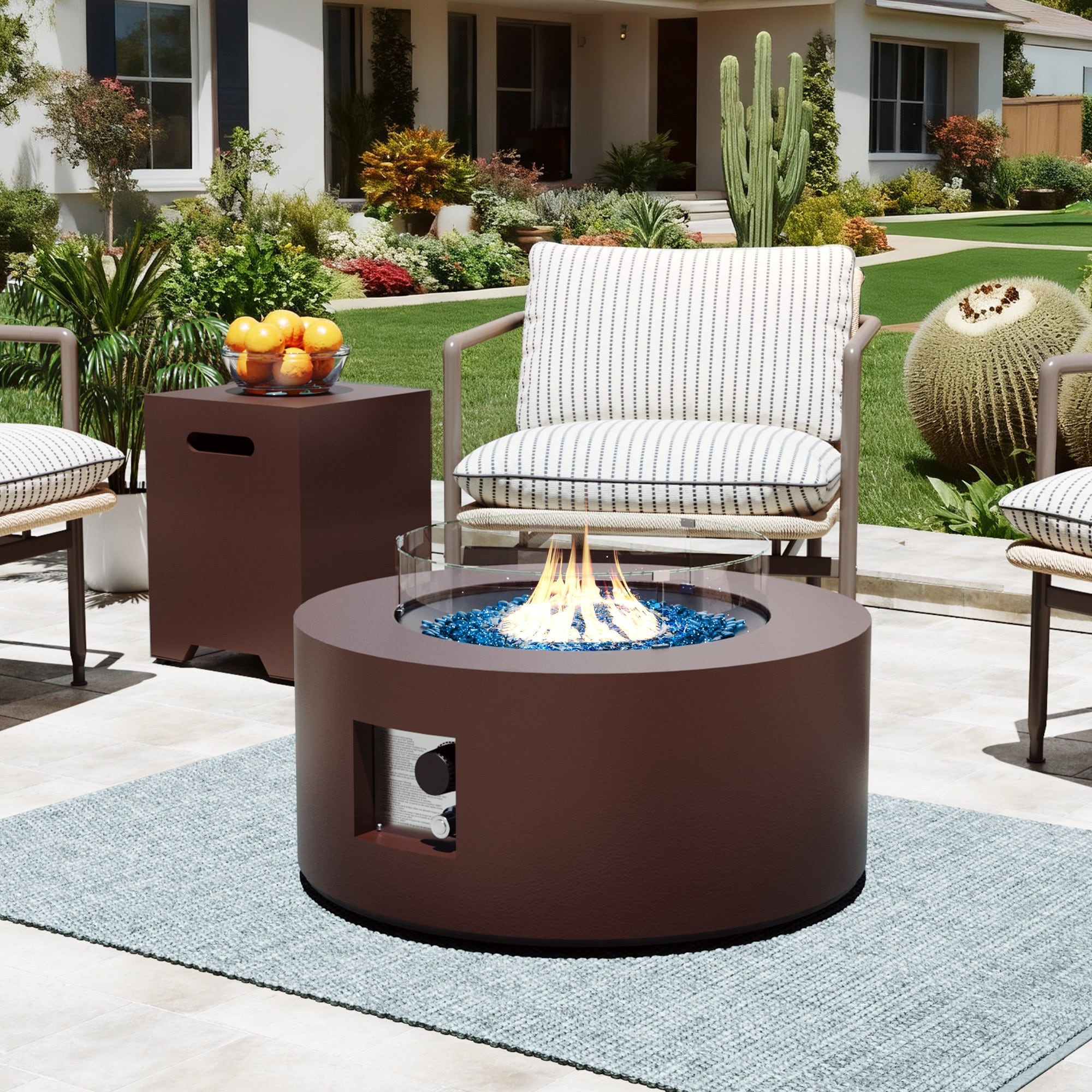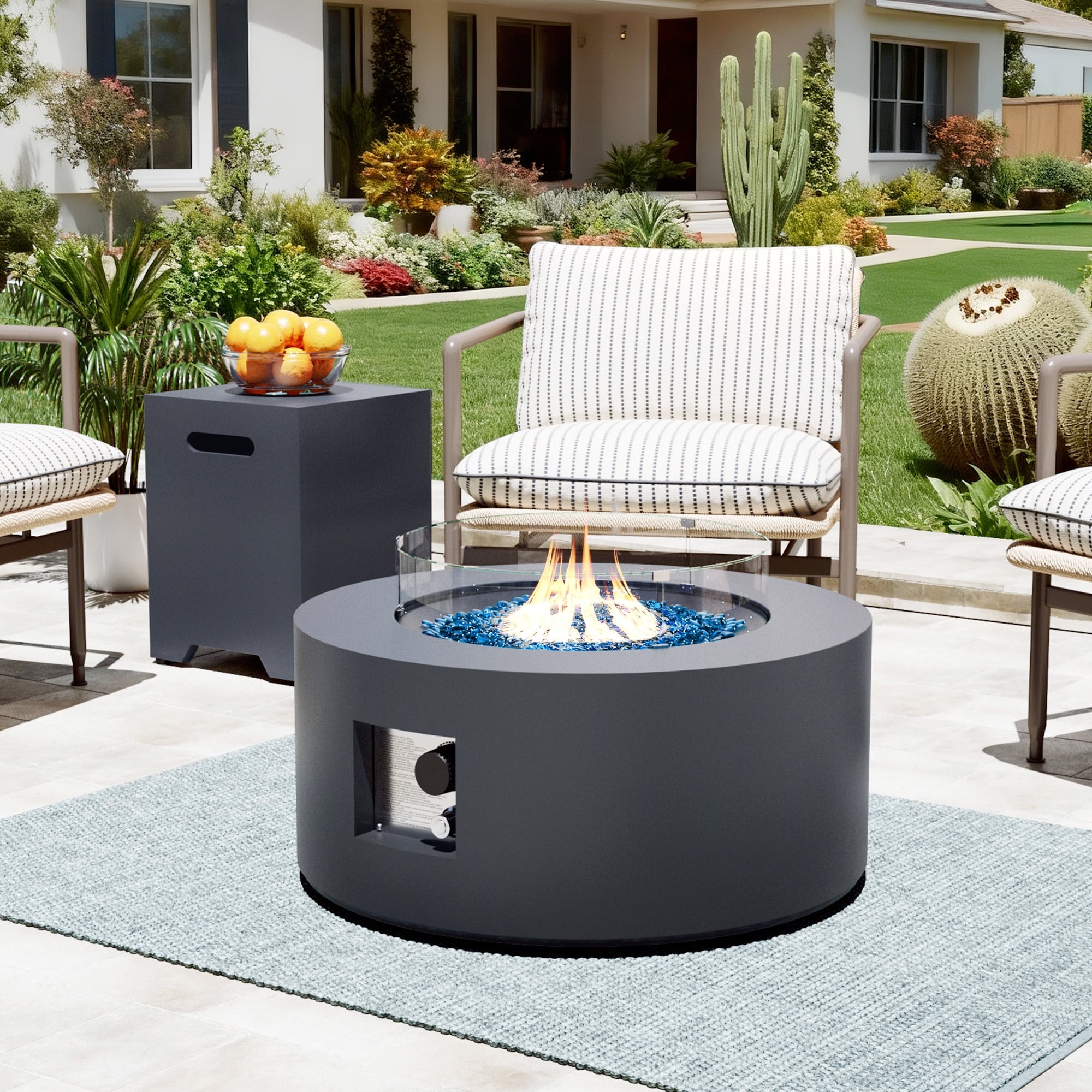 Create a warm and inviting atmosphere in your backyard with this versatile Fire Pit Table. Built with a durable iron frame, it offers both lasting performance and a sleek, modern look.