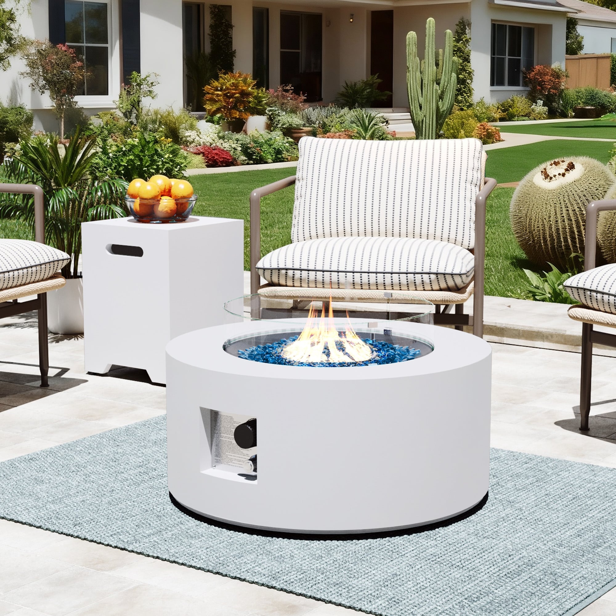 Create a cozy and elegant atmosphere for your outdoor gatherings with the COSIEST Ecru Round Outdoor Propane Fire Pit.