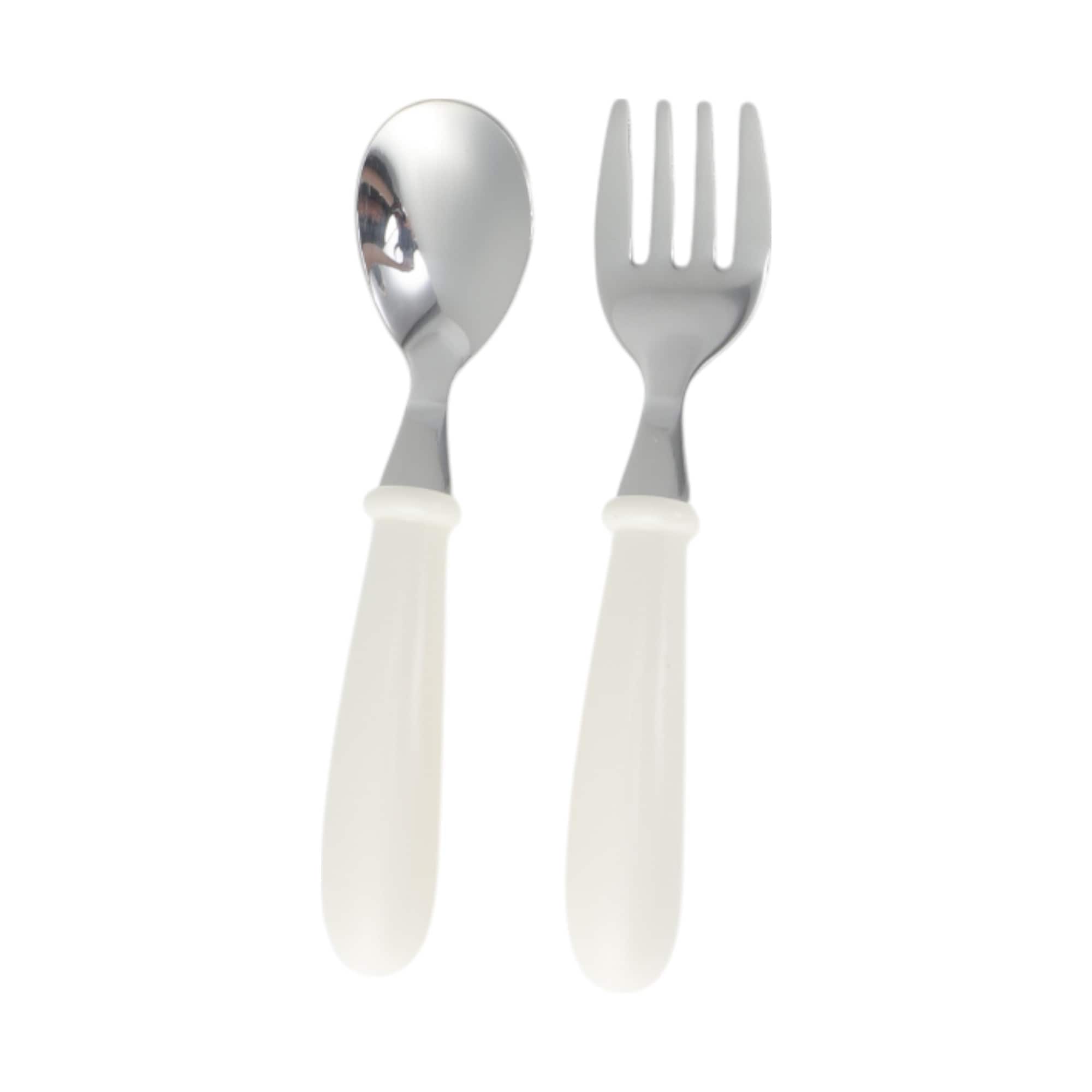 1 Set Flatware Sets Dishwasher Safe Ring-Handle Spoon Fork 2-Piece Set with Box Stainless Steel White 15x5x3cm