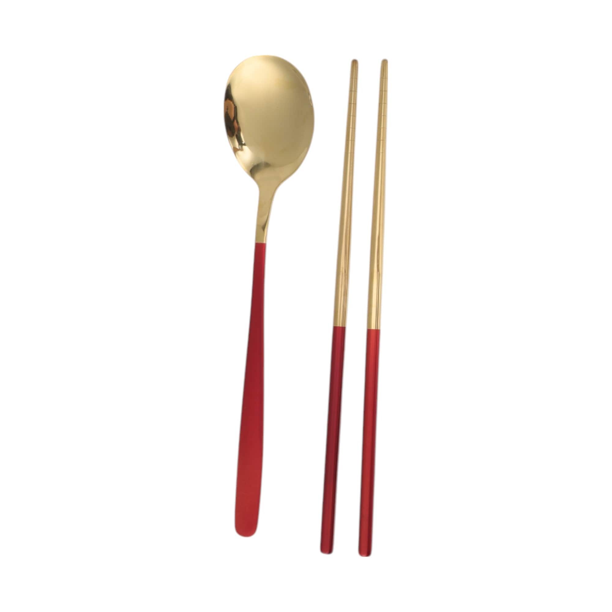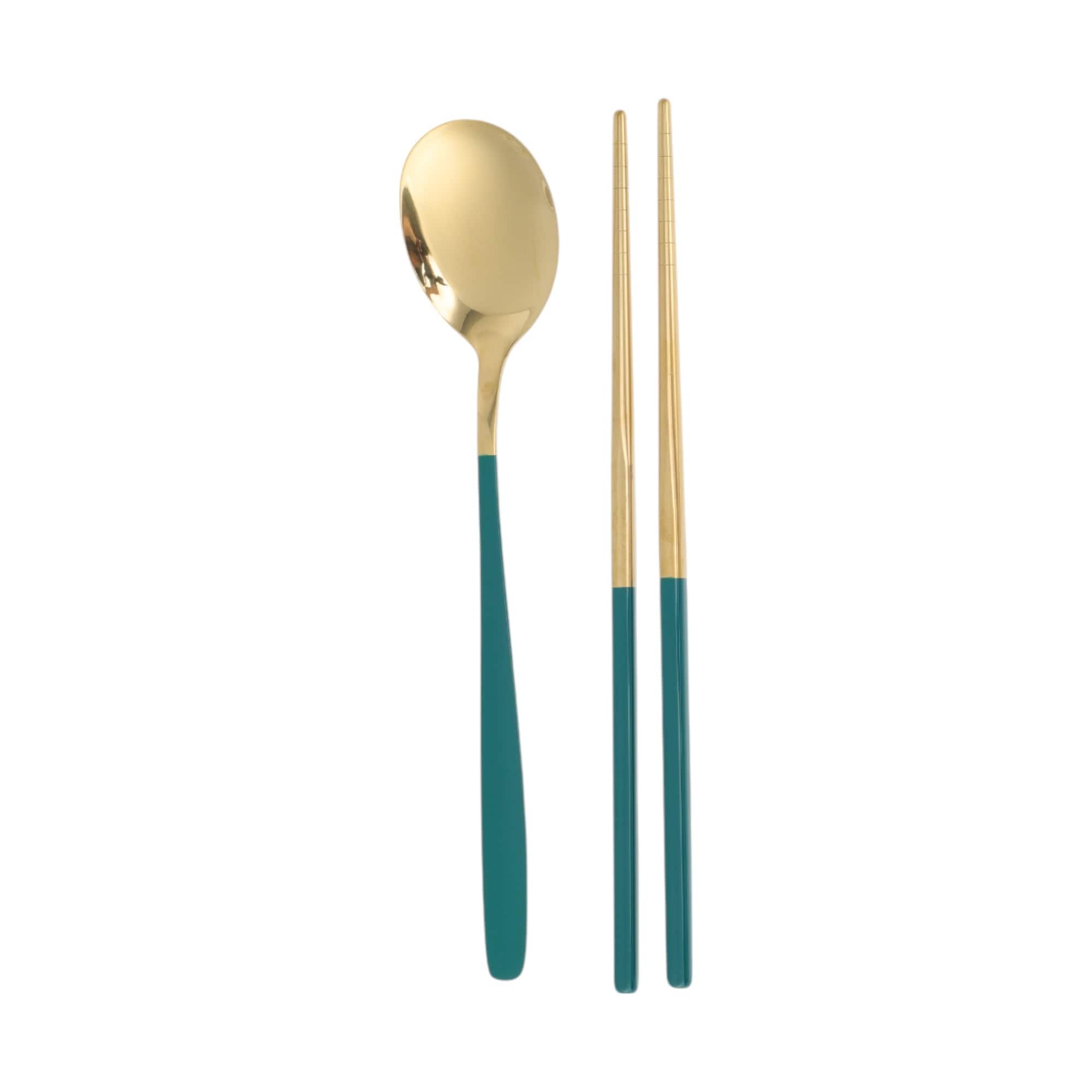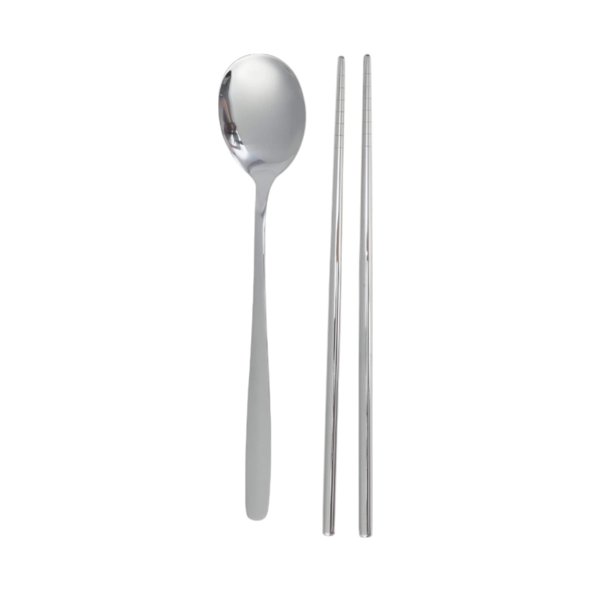 1 Set Flatware Sets Dishwasher Safe Spoon Chopsticks 2-Piece Set with Box 410 Stainless Steel Silver Tone 23.7x6x6cm