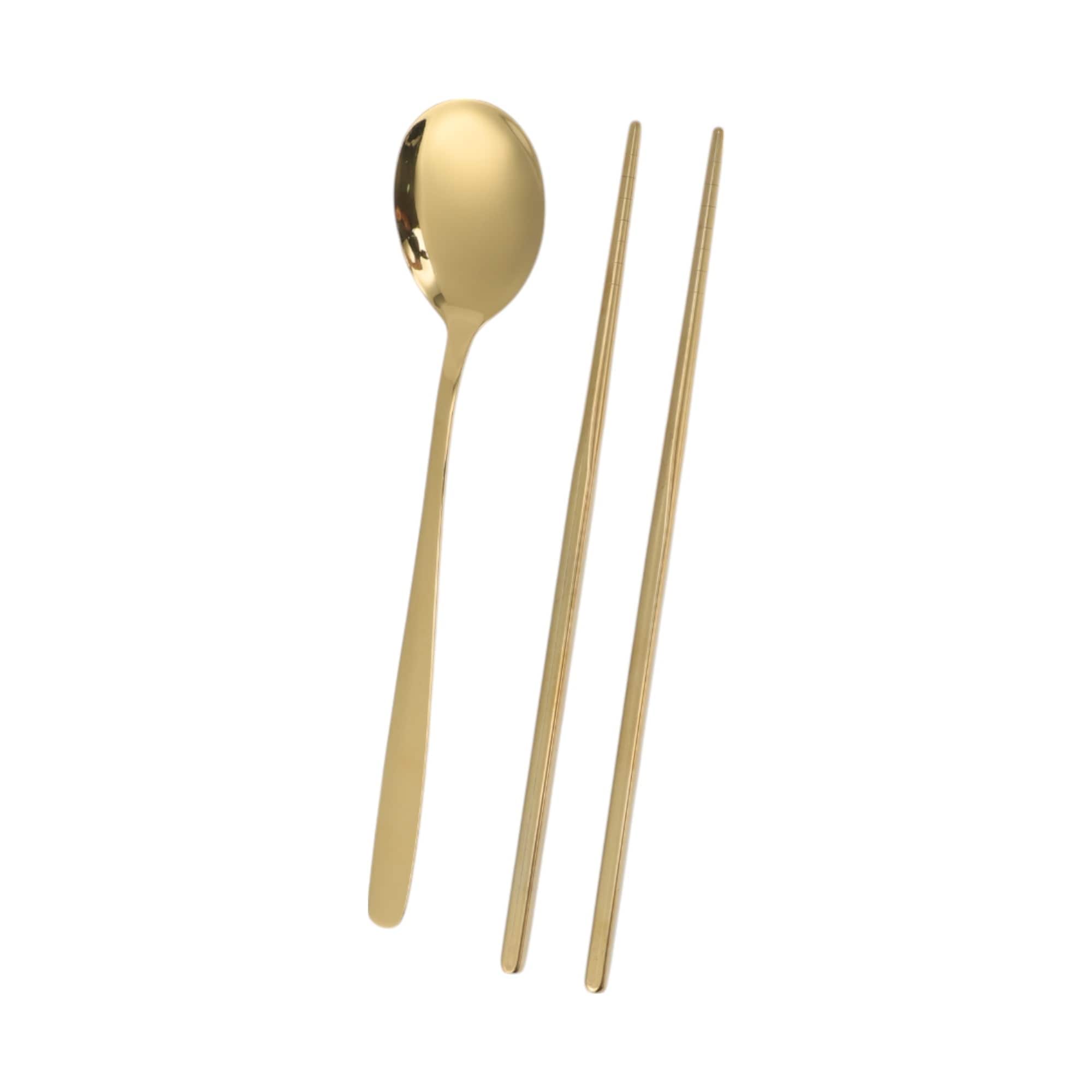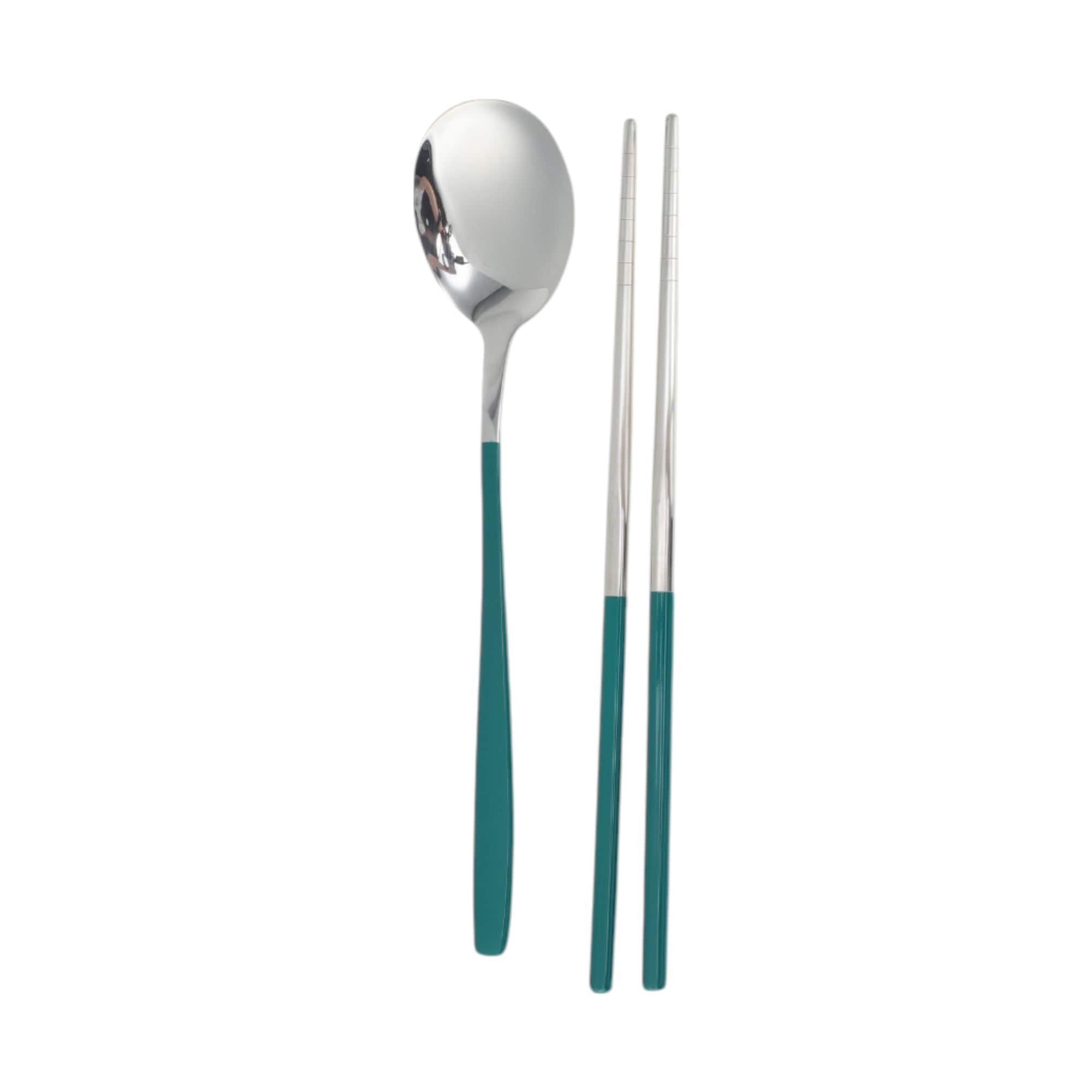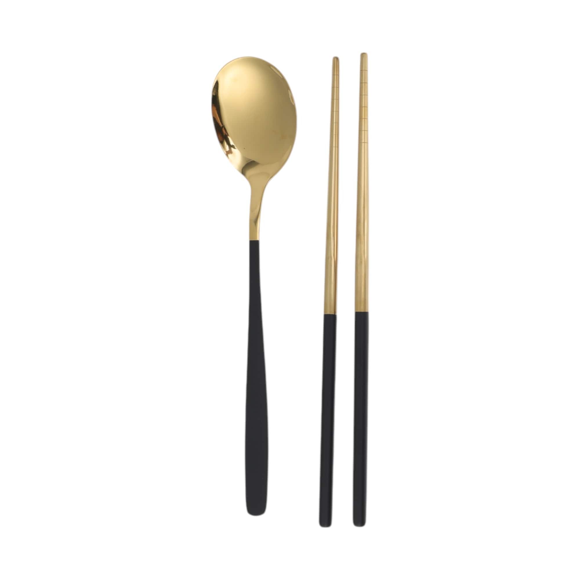 1 Set Flatware Sets Dishwasher Safe Spoon Chopsticks 2-Piece Set with Box 410 Stainless Steel Silver Tone 23.7x6x6cm