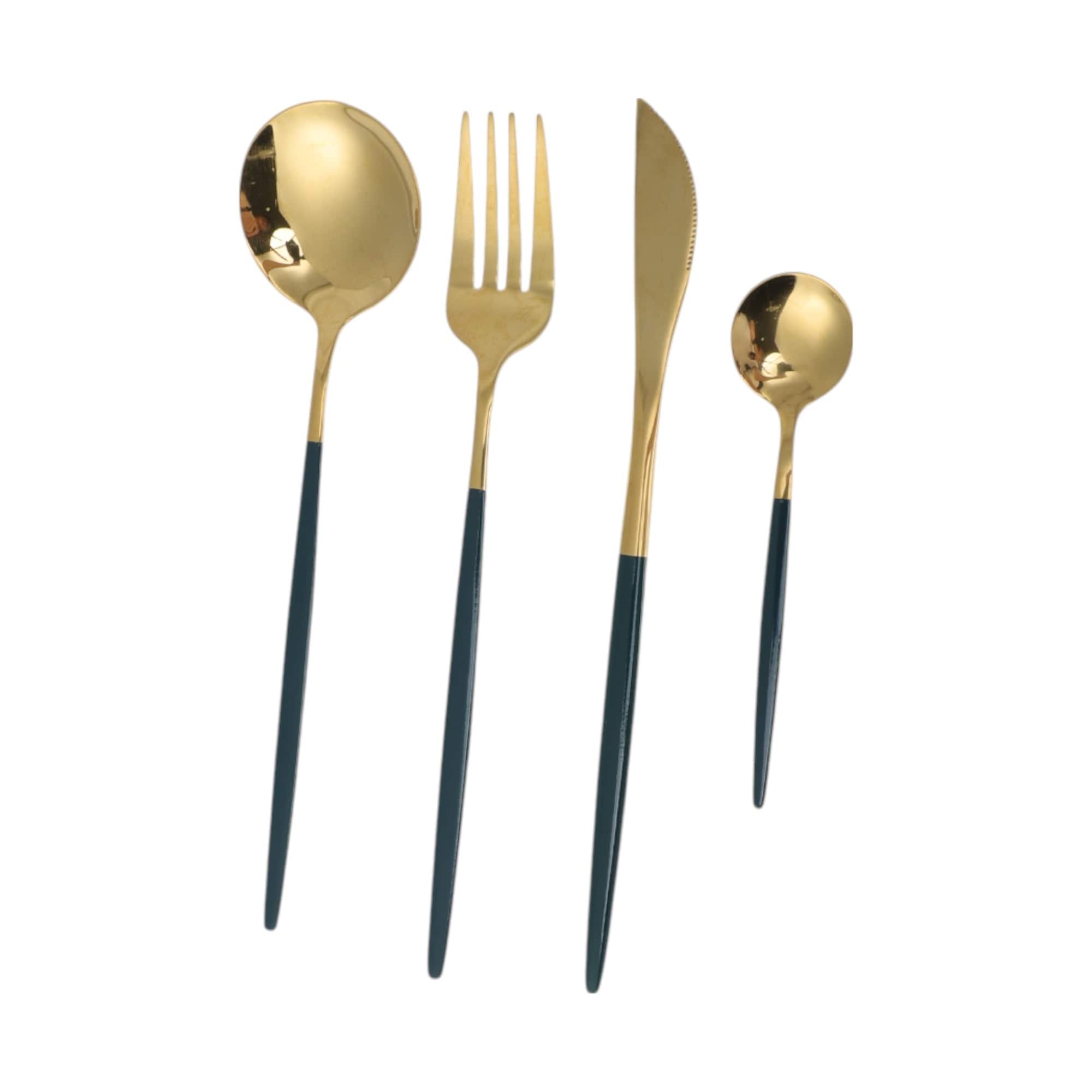 1 Set Flatware Sets Dishwasher Safe Cutlery Set Knife Fork Large Small Spoons 4-Piece Set 410 Stainless Steel 23x5x5cm