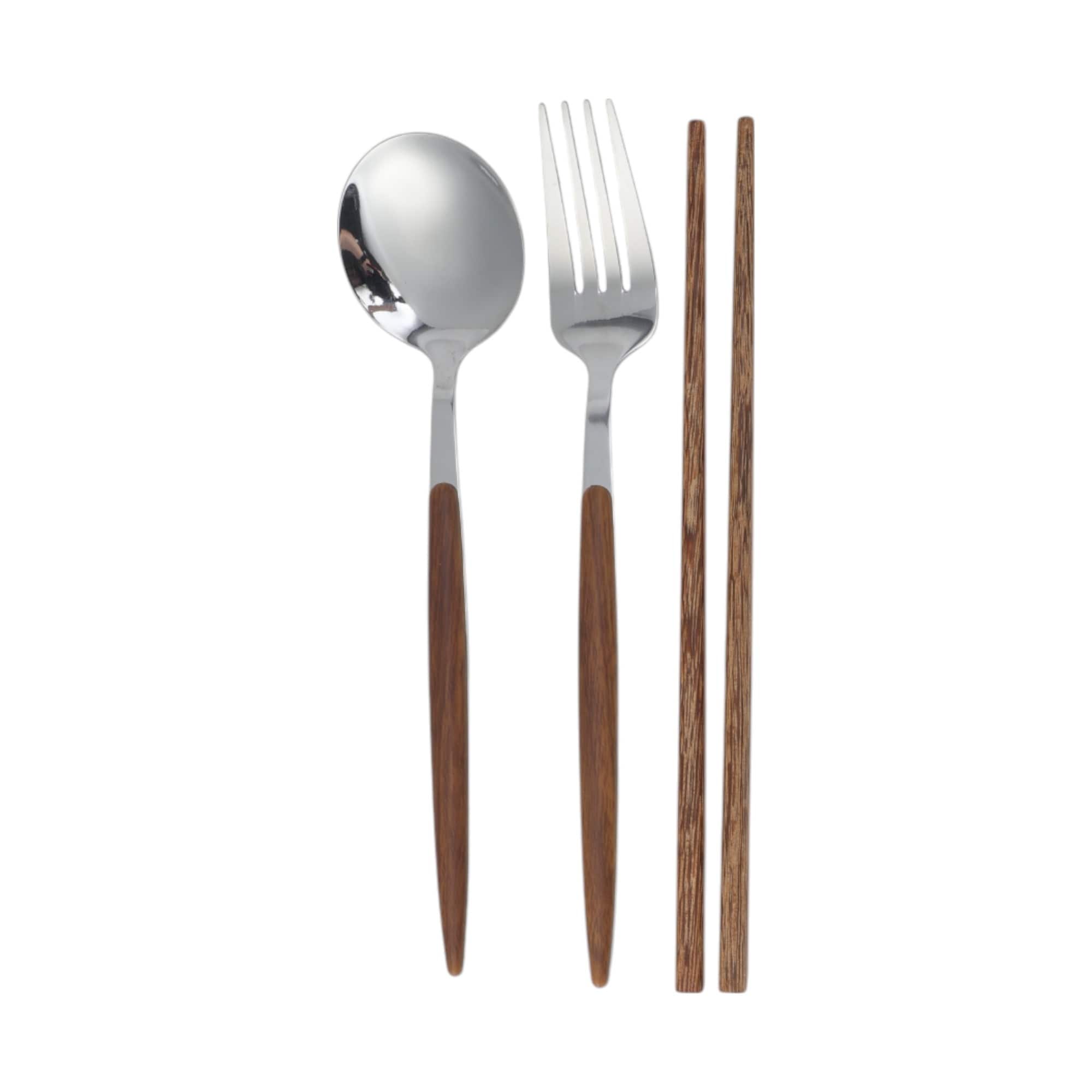 1 Set Flatware Sets Dishwasher Safe Wooden Handle Spoon Fork Chopsticks 3-Piece Set with Box Stainless Steel Wood - 24.5x6x5cm