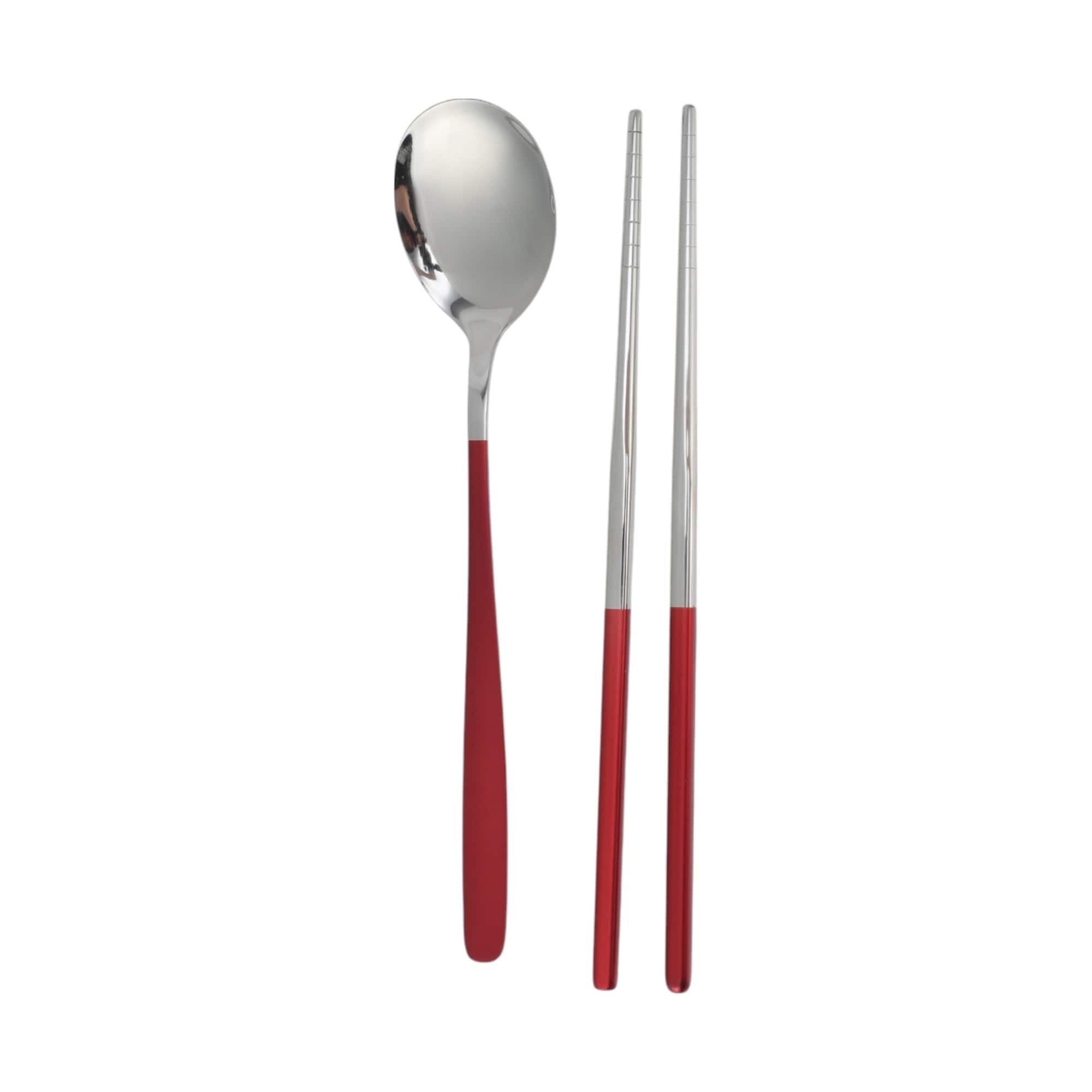 1 Set Flatware Sets Dishwasher Safe Spoon Chopsticks 2-Piece Set with Box 410 Stainless Steel Silver Tone 23.7x6x6cm