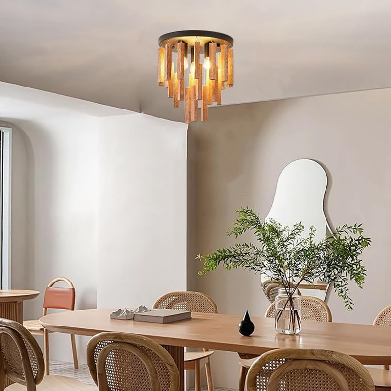 About this item Close To Ceiling Lights Material: Rattan flush mount light is made of oak and black metal.The unique wood ceiling light have Mysterious artistic sense.The open design,easy to clean,easy to replace the bulb,Beautiful and practical Light…