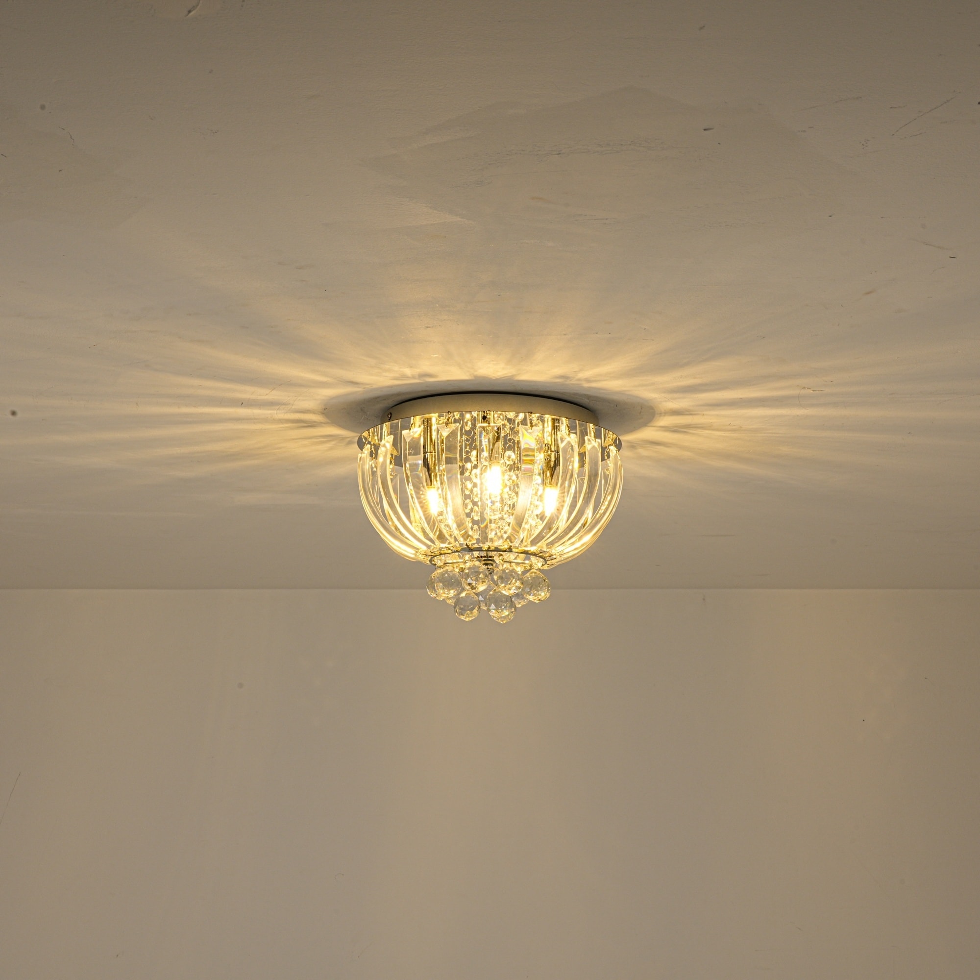 3-Light Transitional Metal & Crystal Flush Mount with Sparkling Clear Crystal Shade for Living Room - 11.8 in. W x 8 in. H
