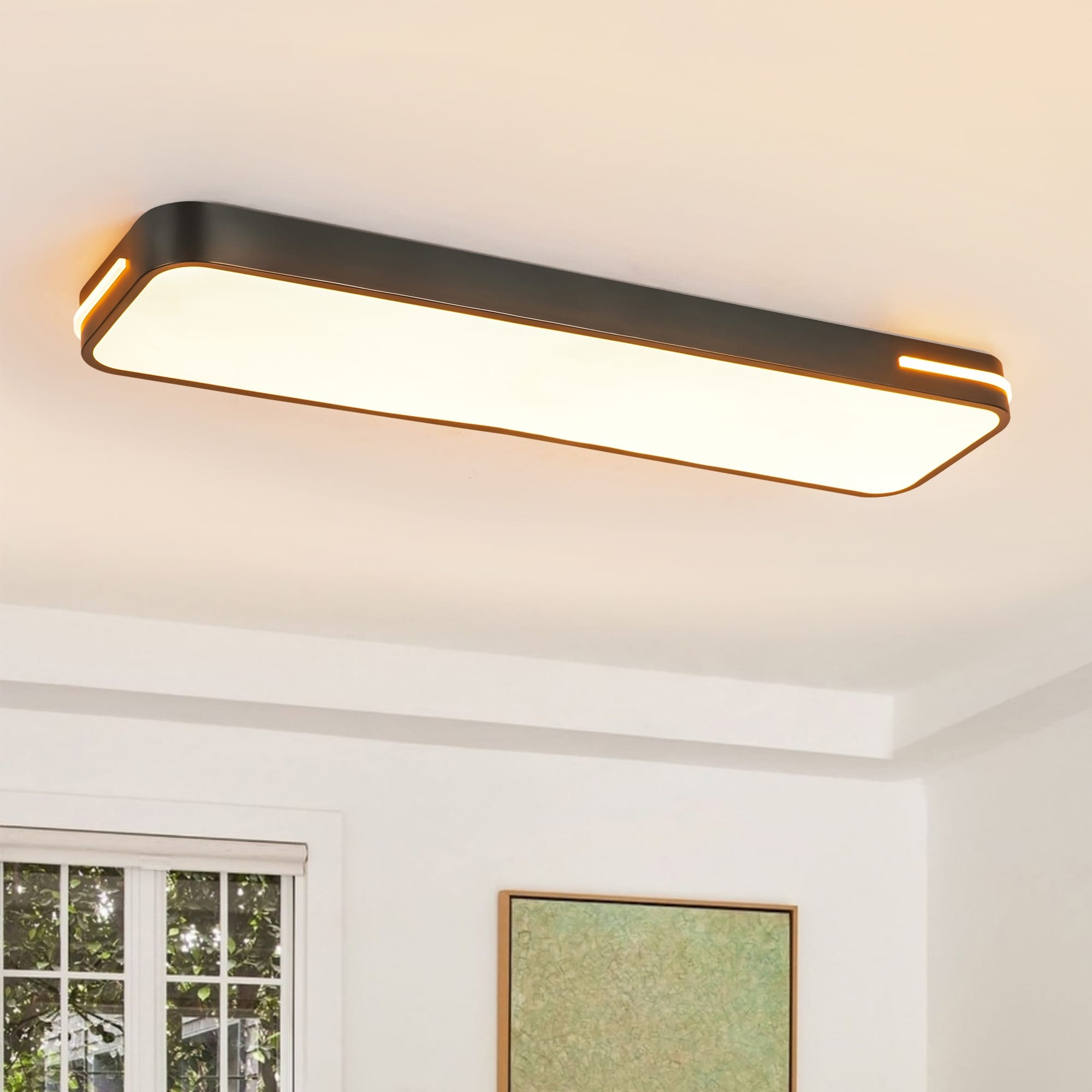 Brighten your space with streamlined style using this 31.5 in. rectangular LED flush mount ceiling light.