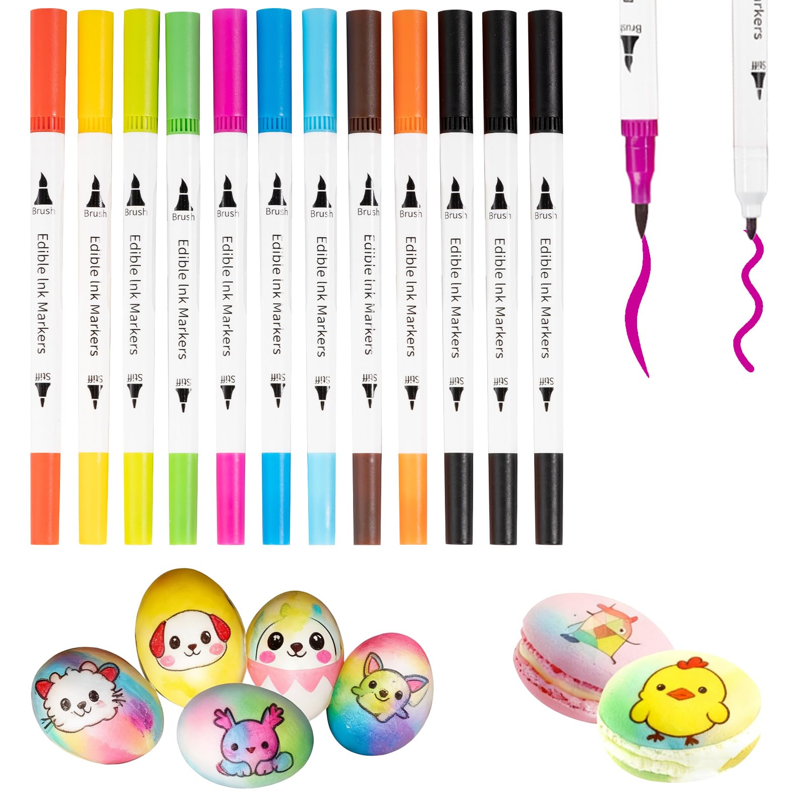 KORNNAC Food Coloring Edible Markers For Cookie Decorating,12pcs Color Pens,Double Side Comestibles Marker With Thick & Fine Tip For Cakes,Icing
