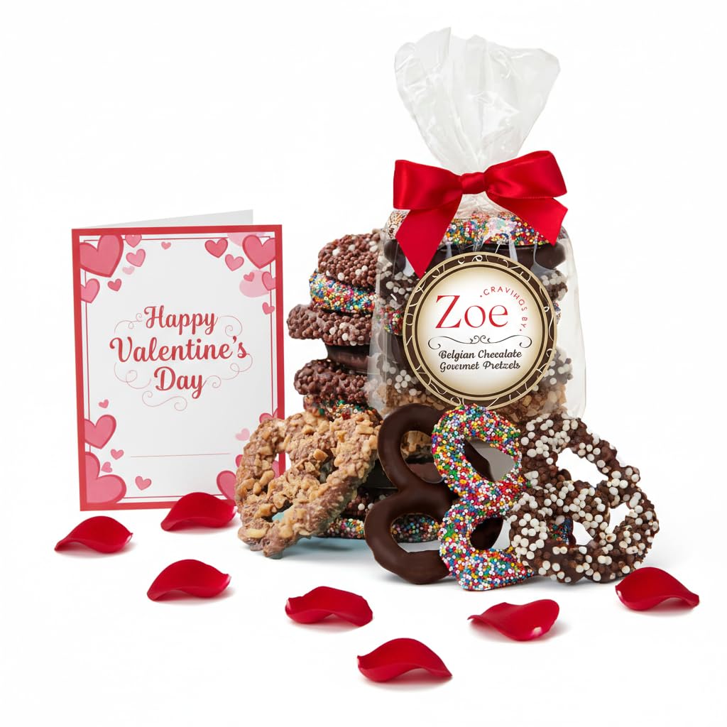 CRAVINGS BY ZOE Valentines Day and Birthday Chocolate Covered Pretzels Gift Bag 8 oz | Gourmet Kosher Milk & Dark Belgian Chocolate Candy Food Gift