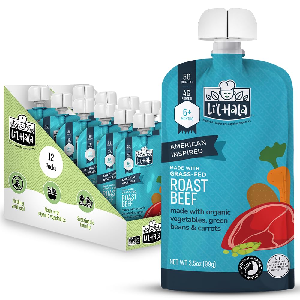 Li'l Hala Foods - Baby Meat Pouches - Toddler Meals with Meat – Protein & Healthy Fats Puree – No Hormones – 6+ Months – 3.5 oz (12 Pack) (Roast Beef)