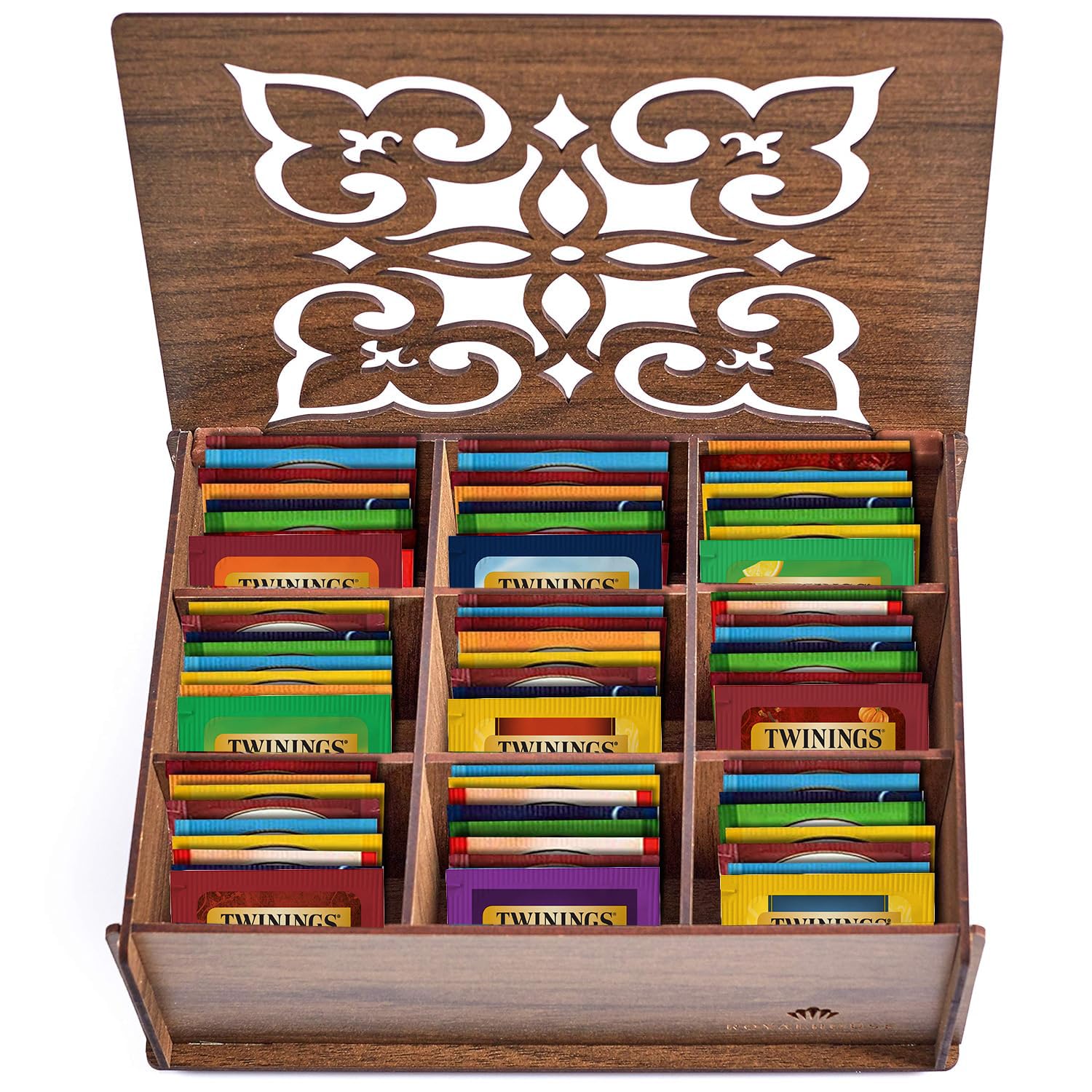 Twinings Tea Bag Sampler Variety with Walnut Wooden Organizer (60 Count) 40 Different Flavours, Gift for Tea Lovers: Women, Men, Mom, Dad, Family,