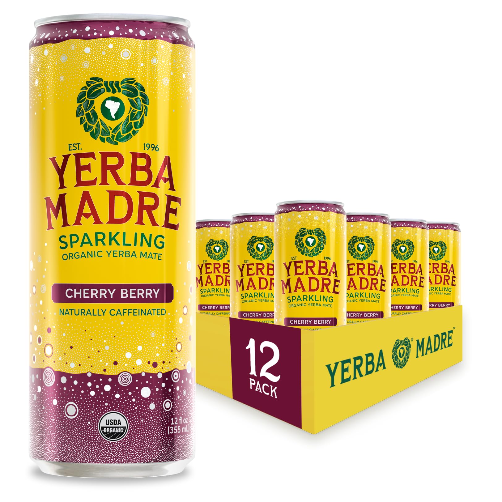 Yerba Madre Organic Sparkling Yerba Mate, Cherry Berry, 115mg Natural Plant Based Caffeine, Smooth Energy & Focus, Carbonated, 12oz Cans (Pack of 12)