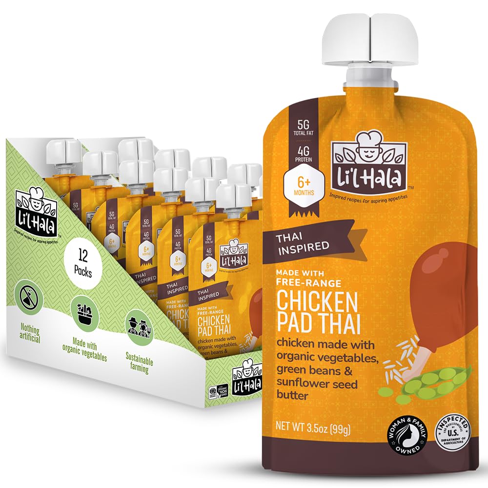 Li'l Hala Foods - Baby Meat Pouches - Toddler Meals with Meat – Protein & Healthy Fats Puree – No Hormones – 6+ Months – 3.5 oz (12 Pack) (Chicken Pad