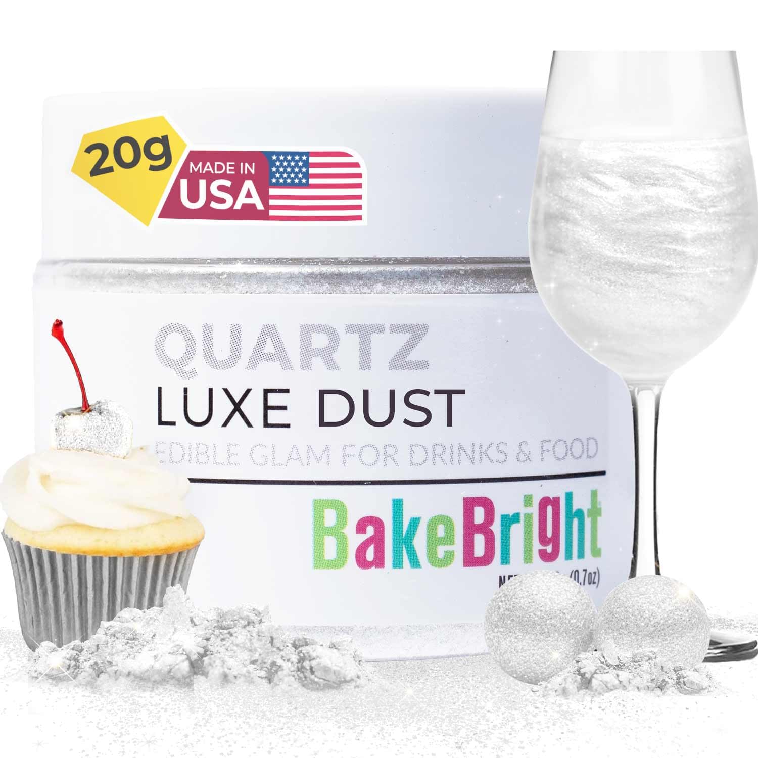 Bulk (20g) White Luster Dust Edible Glitter for Cocktails | Premium Edible White Luster Dust for Cake Decorations - Blanco Edible Glitter for Drinks