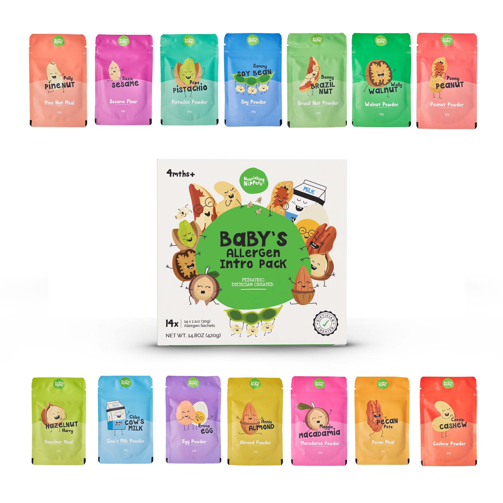 Nourishing Nippers Early Allergen Introduction - for Babies 4+ Months,14 Allergens in one pack, Including Peanut, Egg & Milk | Mix with Baby Food &