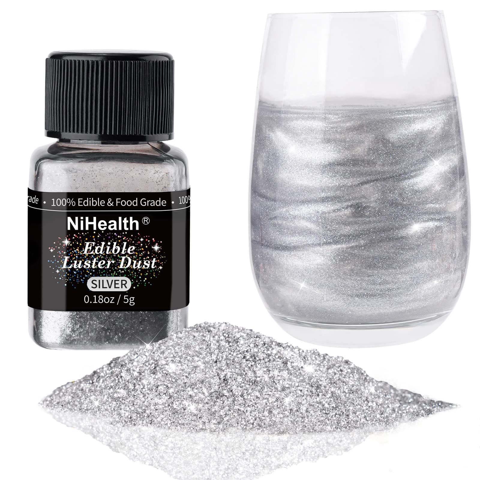 NiHome Edible Food-Grade Glimmer Powder Glitter Luster Dust Metallic Food Decorating Sprinkle Glimmery Dust for Drink Wine Beverage Cake Candy Dessert