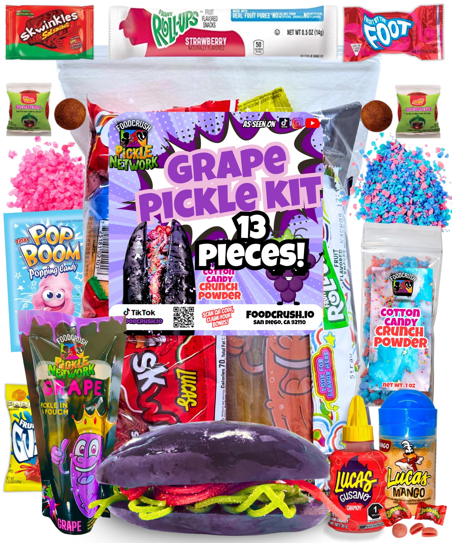 ✔️FOOD CRUSH GRAPE PICKLE KIT As Seen On Tiktok. The ultimate OG pickle kit from the creators of the blue raspberry pickle. Record your reaction and upload your videos to social media! Bursting with grape flavor! A sweet, sour and salty explosion in your mouth that is unlike any other food exper