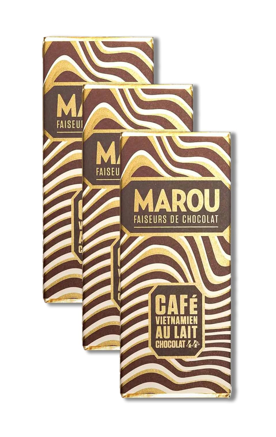 Marou Origin Plus Ca Phe Sua (Vietnamese Coffee) Milk Chocolate 44% Cacao Dark Chocolate 3-Pack | Vietnam Single Origin, Dairy Free, Gluten Free, Soy