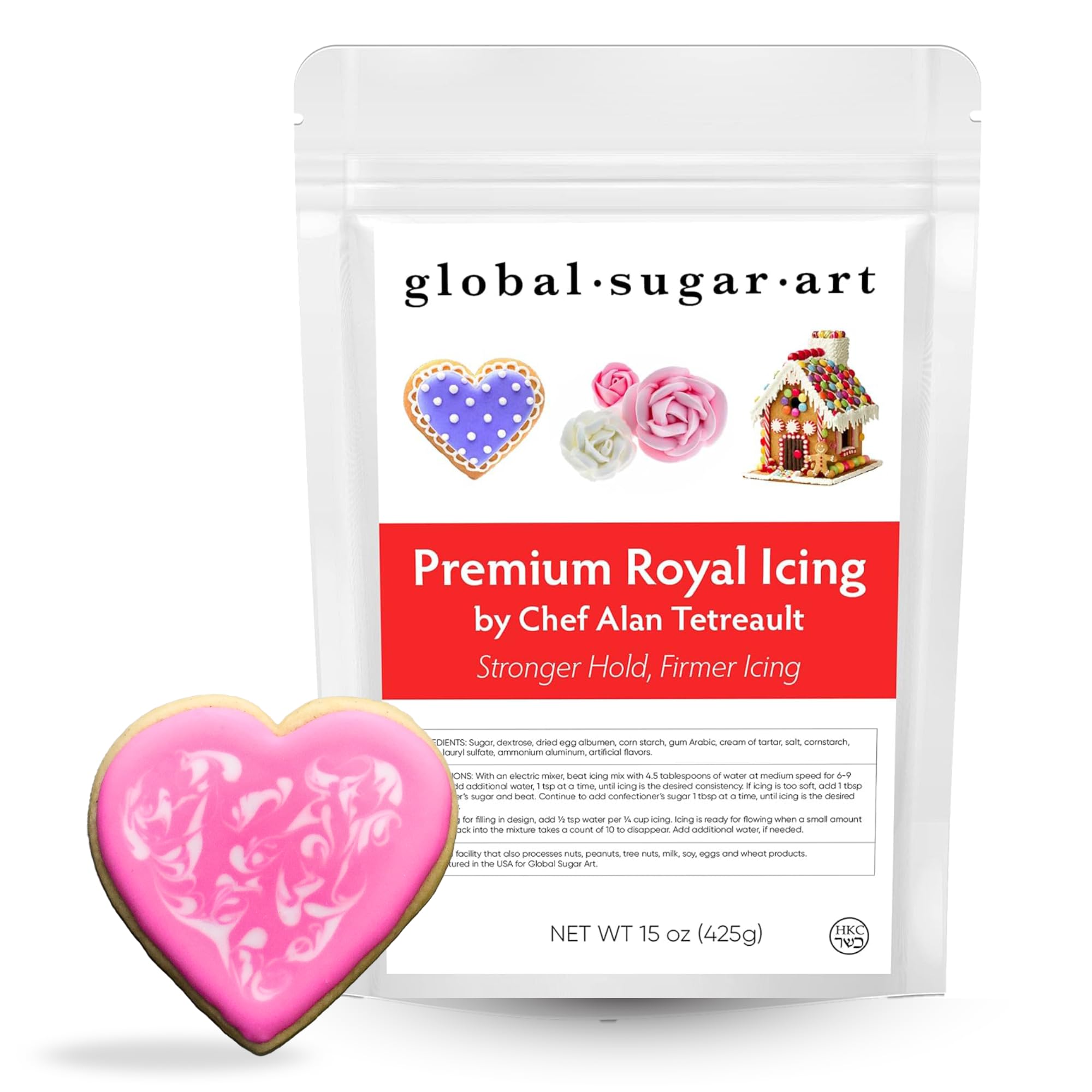 Global Sugar Art Premium Royal Icing Mix, Kosher Frosting for Cookie Decorating, Made in USA, Just add Water (15 Ounces, 1 Pack)