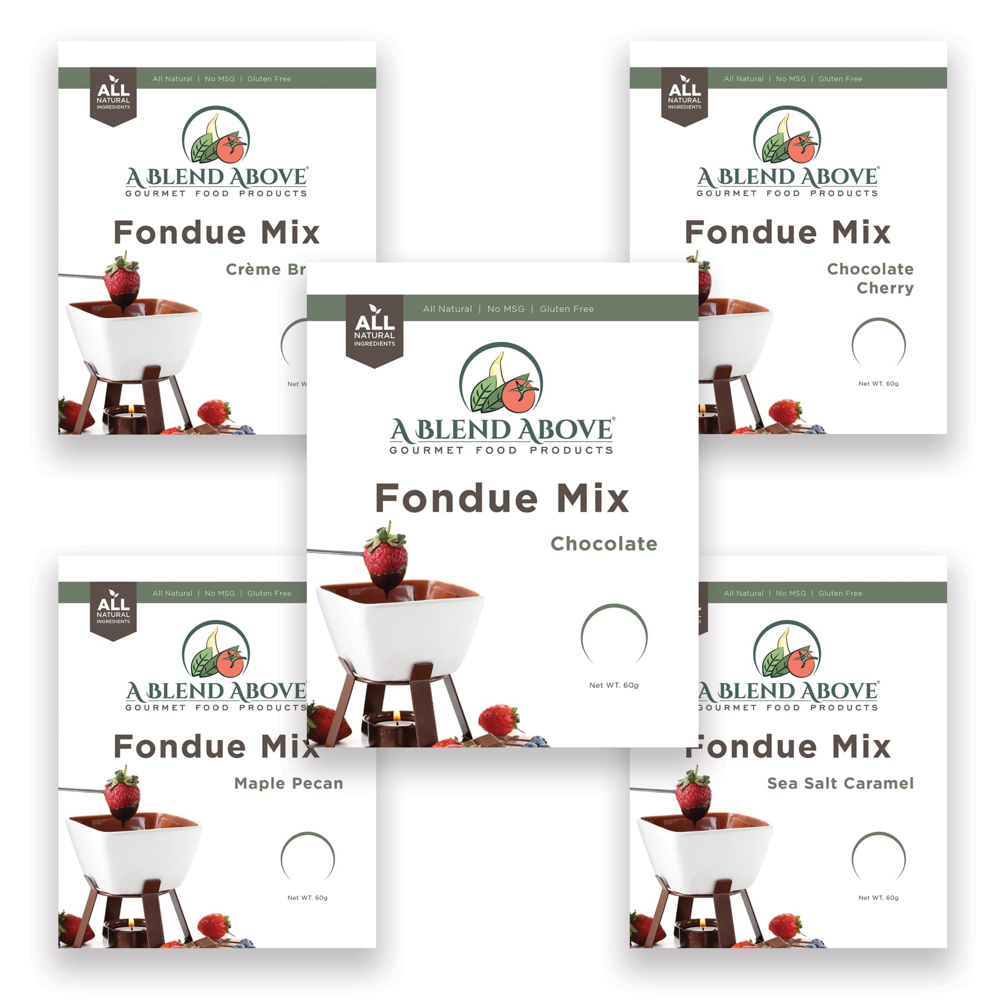 A Blend Above Fondue Mix - Creme Brulee, Sea Salt Caramel, Maple Pecan, Chocolate Cherry, and Chocolate, 2.12 ounces, All Natural Flavor, No MSG,