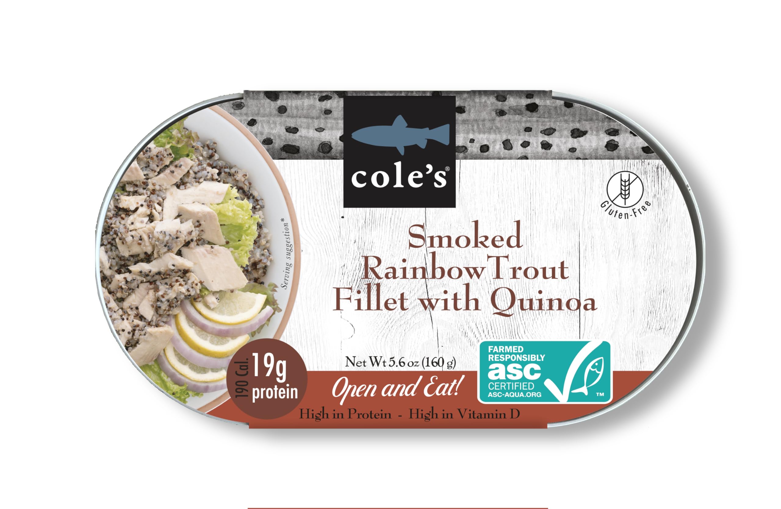 COLE’S - Smoked Rainbow Trout Fillet with Quinoa | Open & Ready to Eat Meal | 5.6 oz Canned & Hand-Packed | 19g Protein | High in Vitamin D | 1 unit
