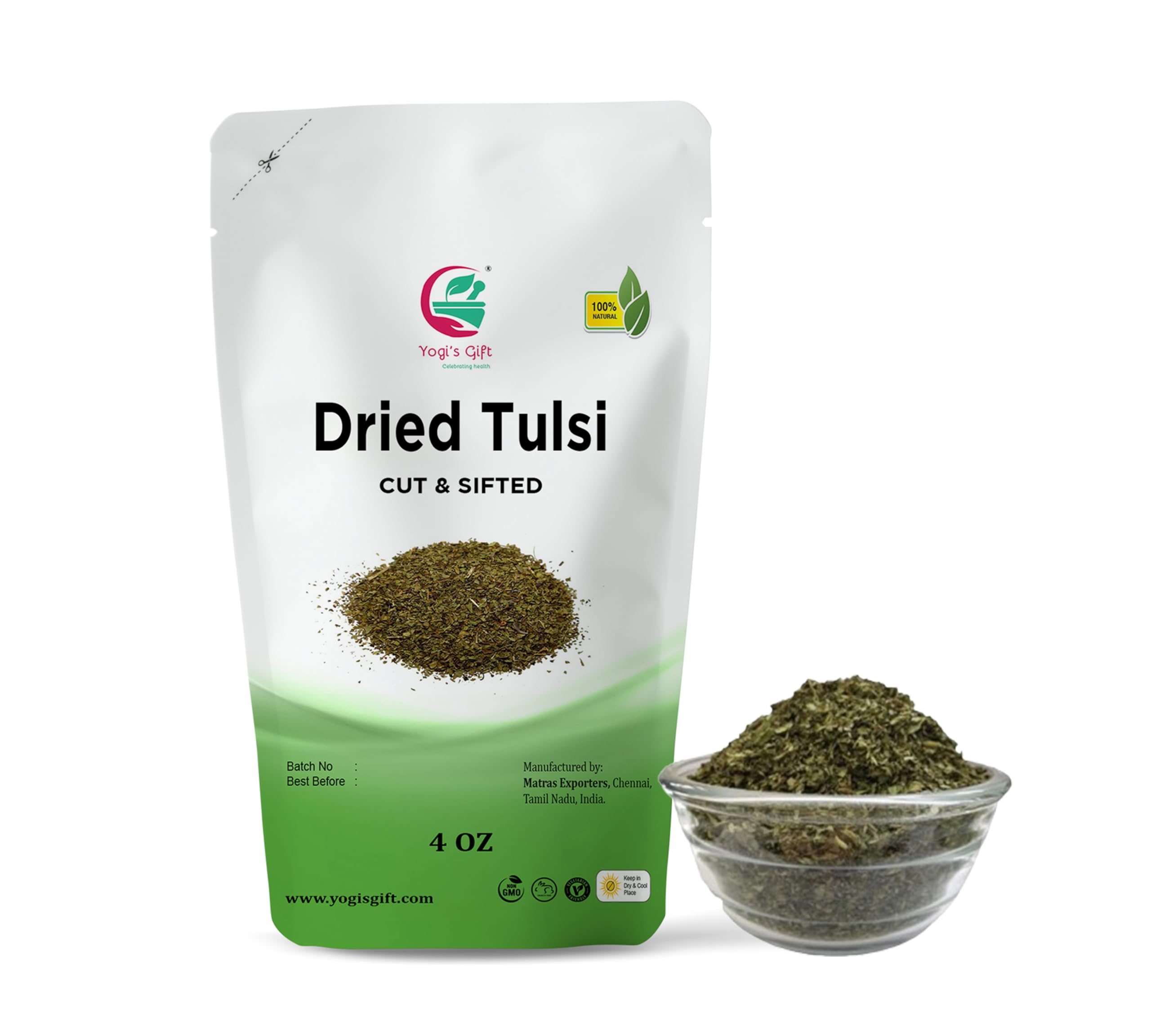 Dried Tulsi | Holy Basil Leaf Tea 4 oz | Relaxing and Calming Tea | 100% Natural | by Yogi's Giftยฎ