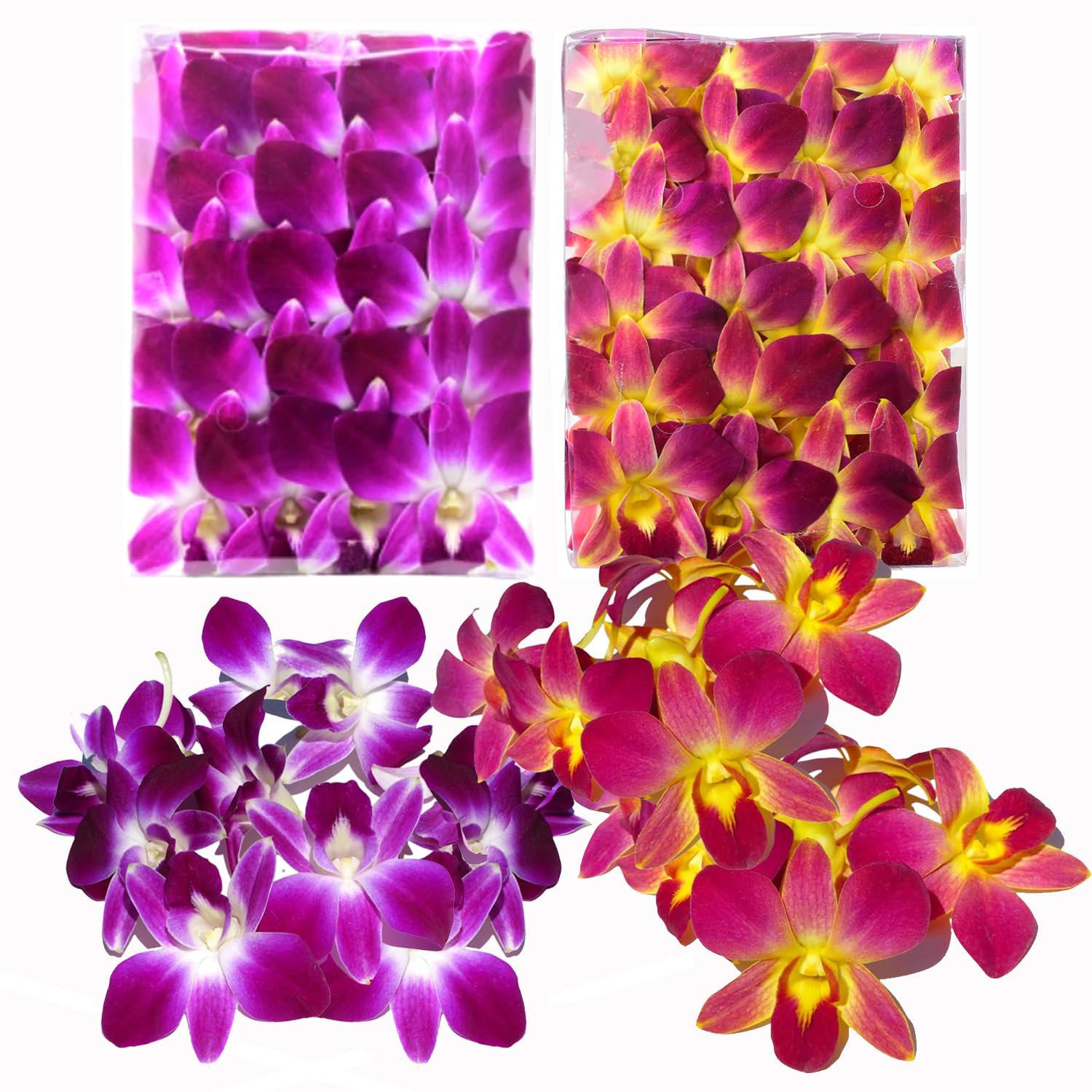 Miami Fresh Orchid Flower OrchidClub USA Sunne Tropical Loose Bloom DIY Lei, food & drink decoration (100 PURPLE YELLOW)