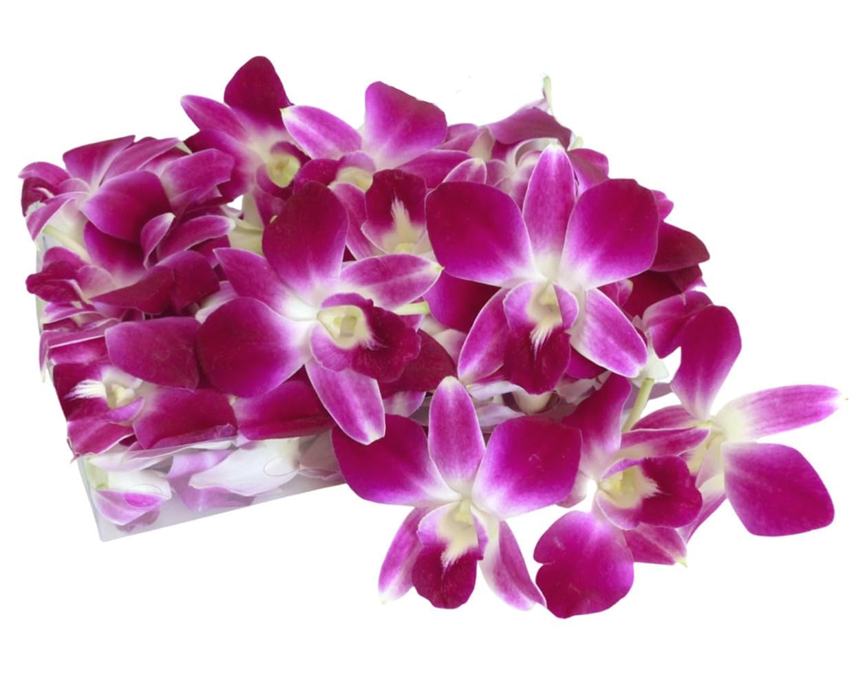 Fresh cut flower orchid head loose bloom DIY your own flower LEI (lei 100 cm or 40inch use approx 80 bloom per single lei and 120 blooms for double lei) Fresh orchid loose bloom Tropical Orchid commercial cooler 45-59F, for home use fridge 40F (not freezer) will last many days. If no fridge, store i