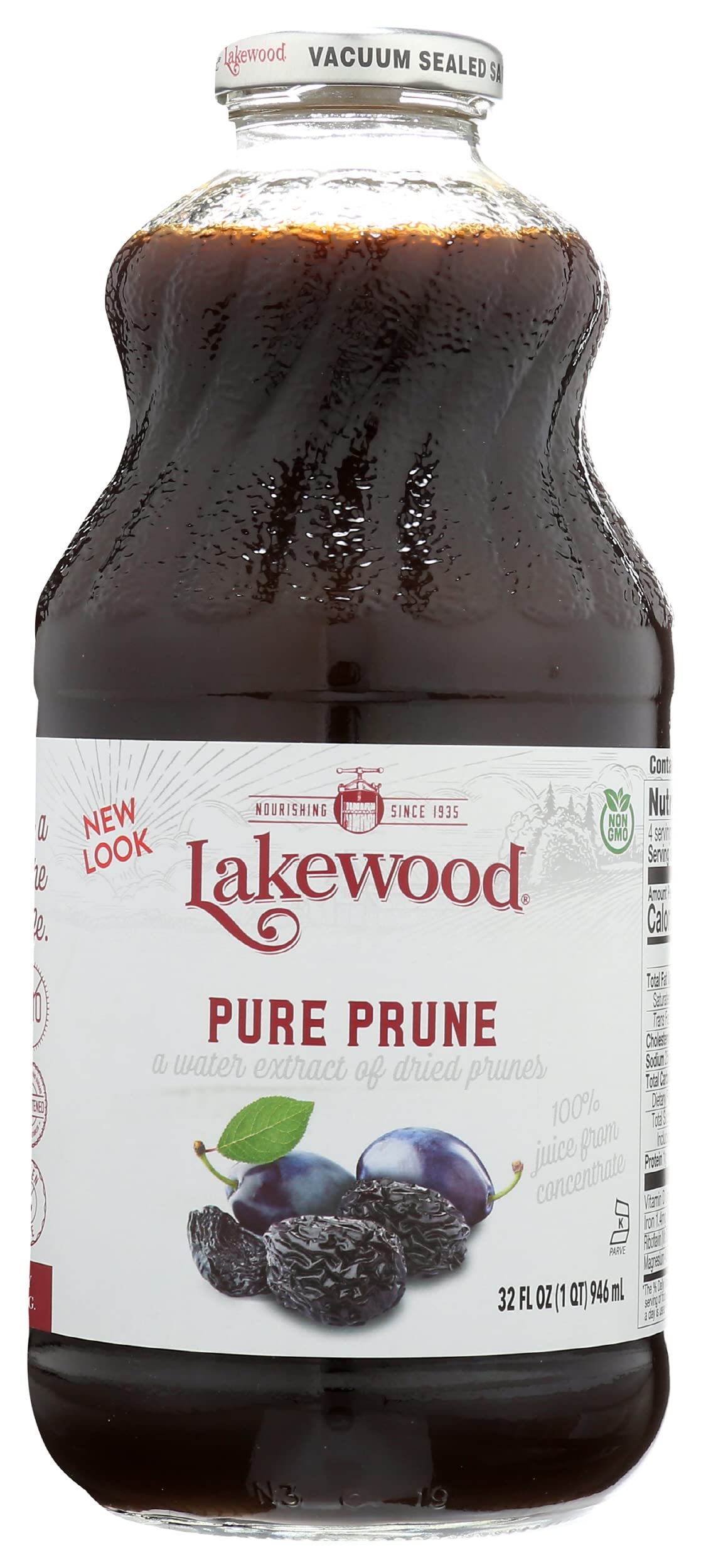 Lakewood Premium Pure Prune Juice, Gluten Free, Non GMO, Preservative Free, 32 Fluid Ounce (Pack of 6)