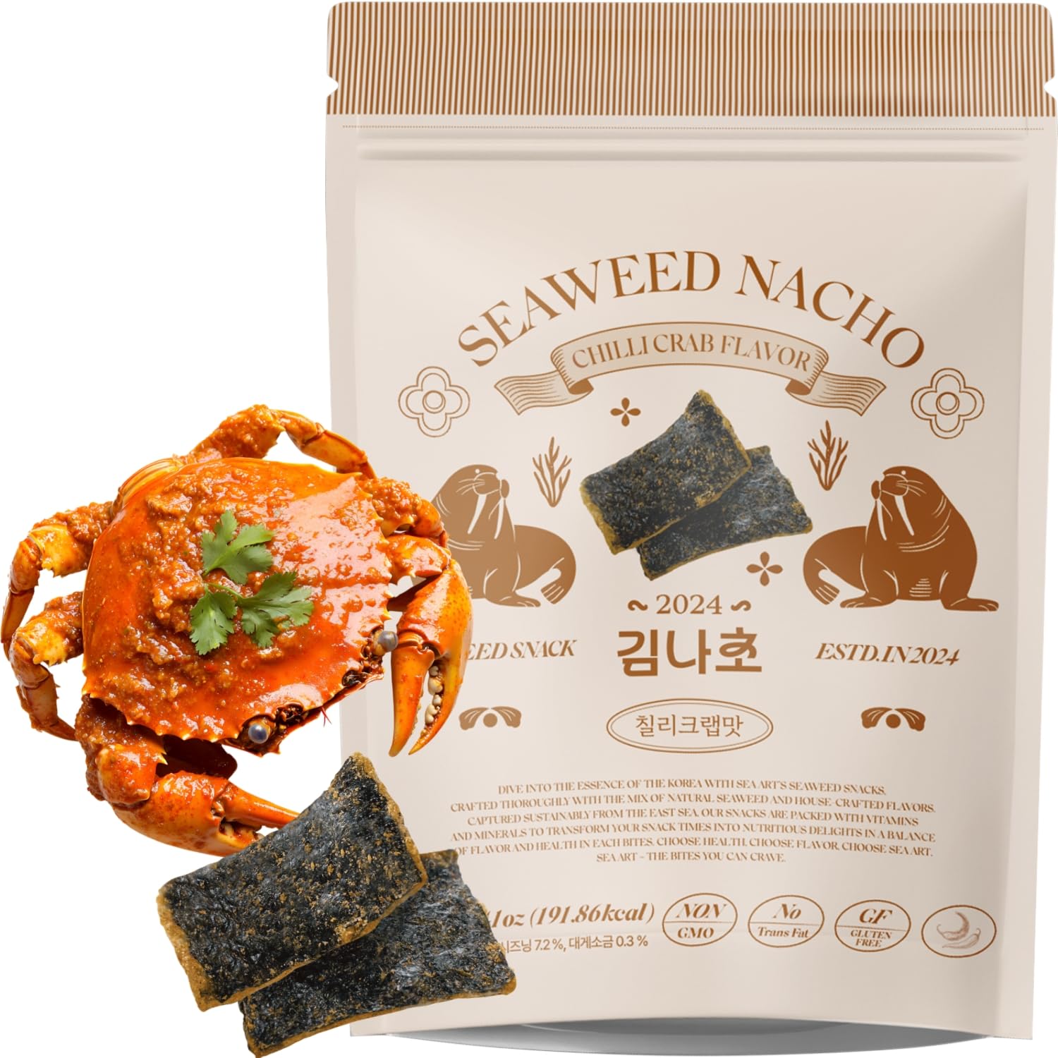 Korean Food SEA*ART Chilli Crab Flavored Seaweed Nachos – 40g (1.41oz) Zipper Pack – Bold Chilli Crab Kick, Crispy & All-Natural, 100% Vegan Fusion