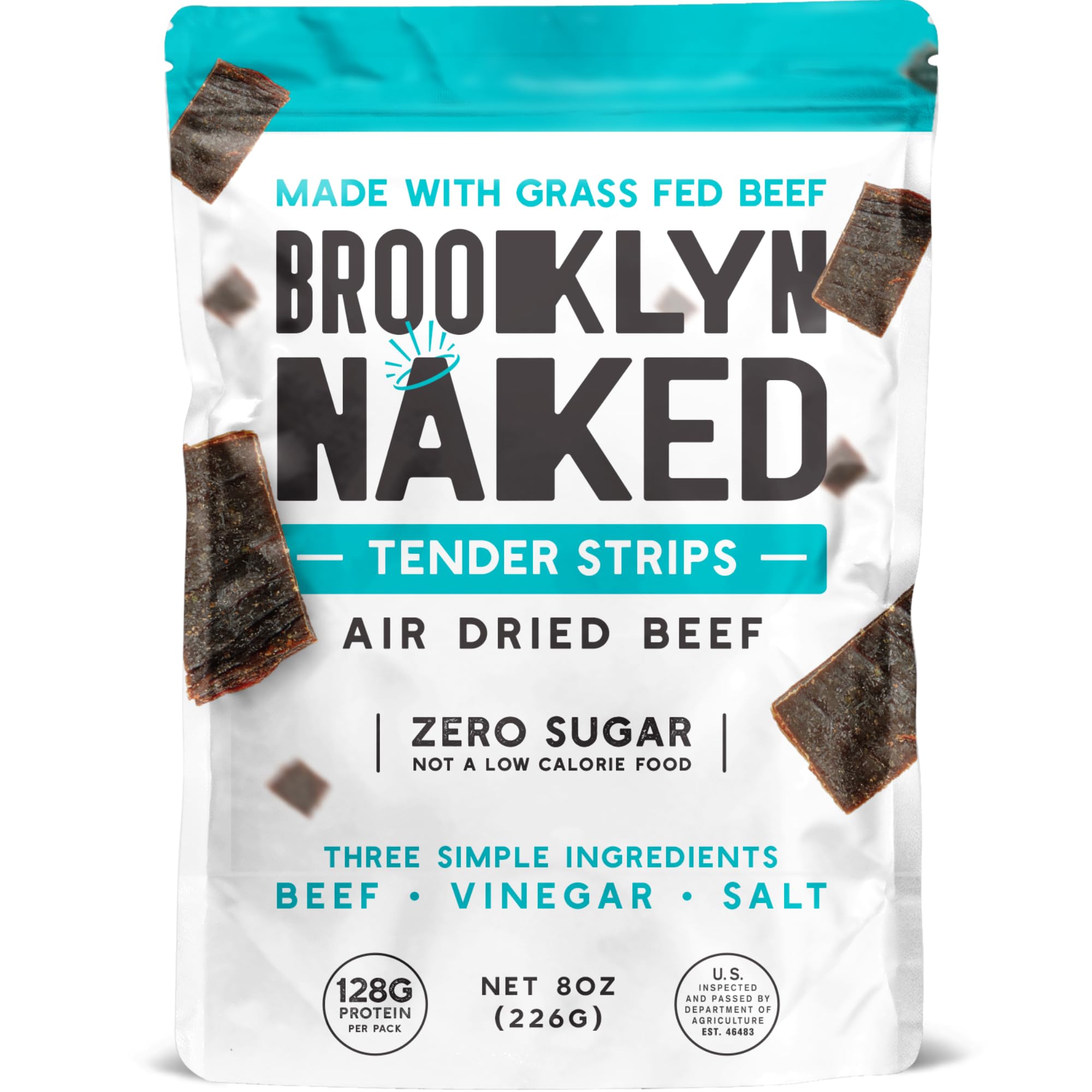Brooklyn Naked Tender Strips - (8 oz, Pack of 1) – Chewy Air Dried Grass Fed Protein Snacks – Sugar Free Beef Jerky Alternative – Organic Beef Snacks