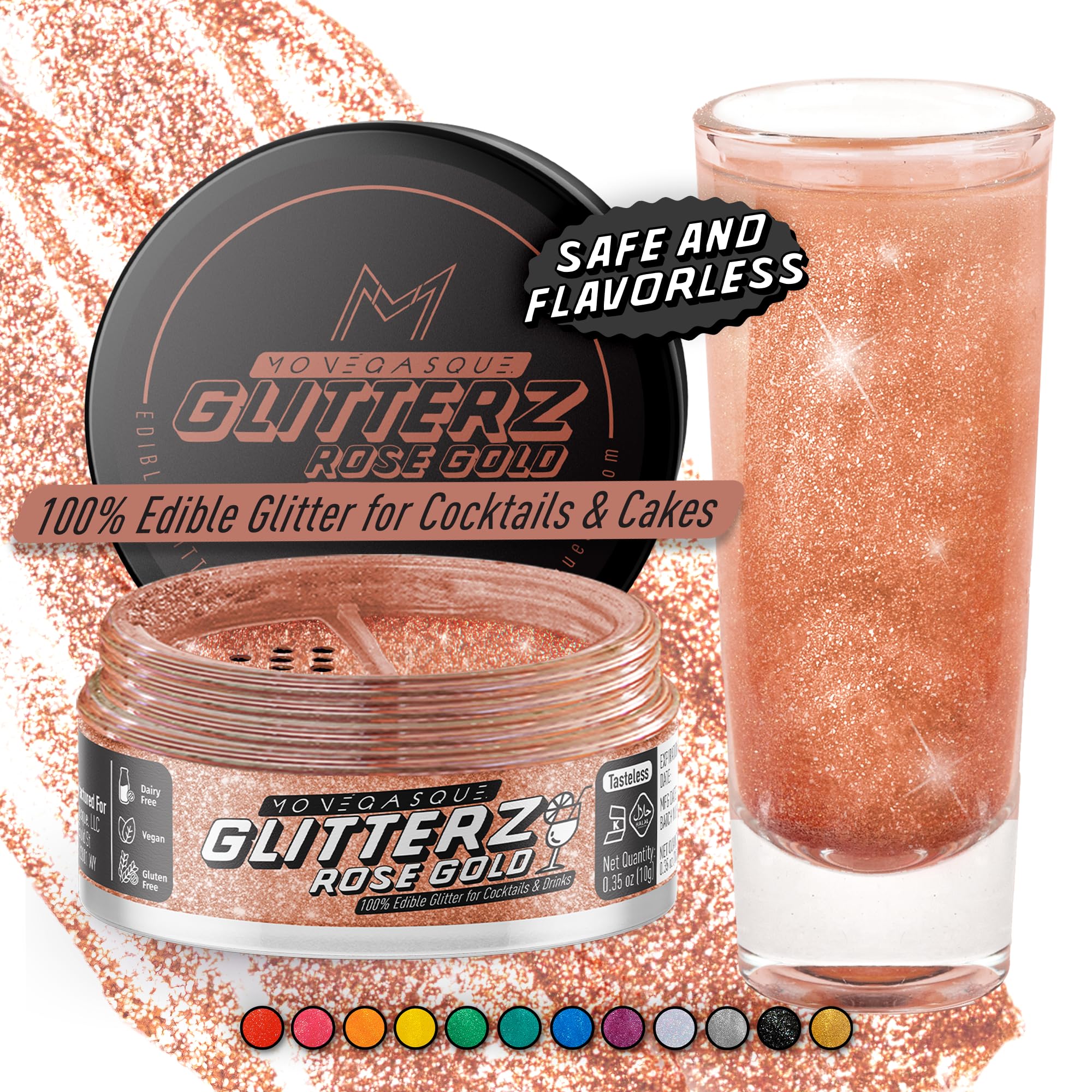 MONÉGASQUE Rose Gold Edible Glitter for Drinks 10g – Rose Gold Edible Glitter for Cakes – Chocolate, Cupcake, Strawberries, & Cake Decorations