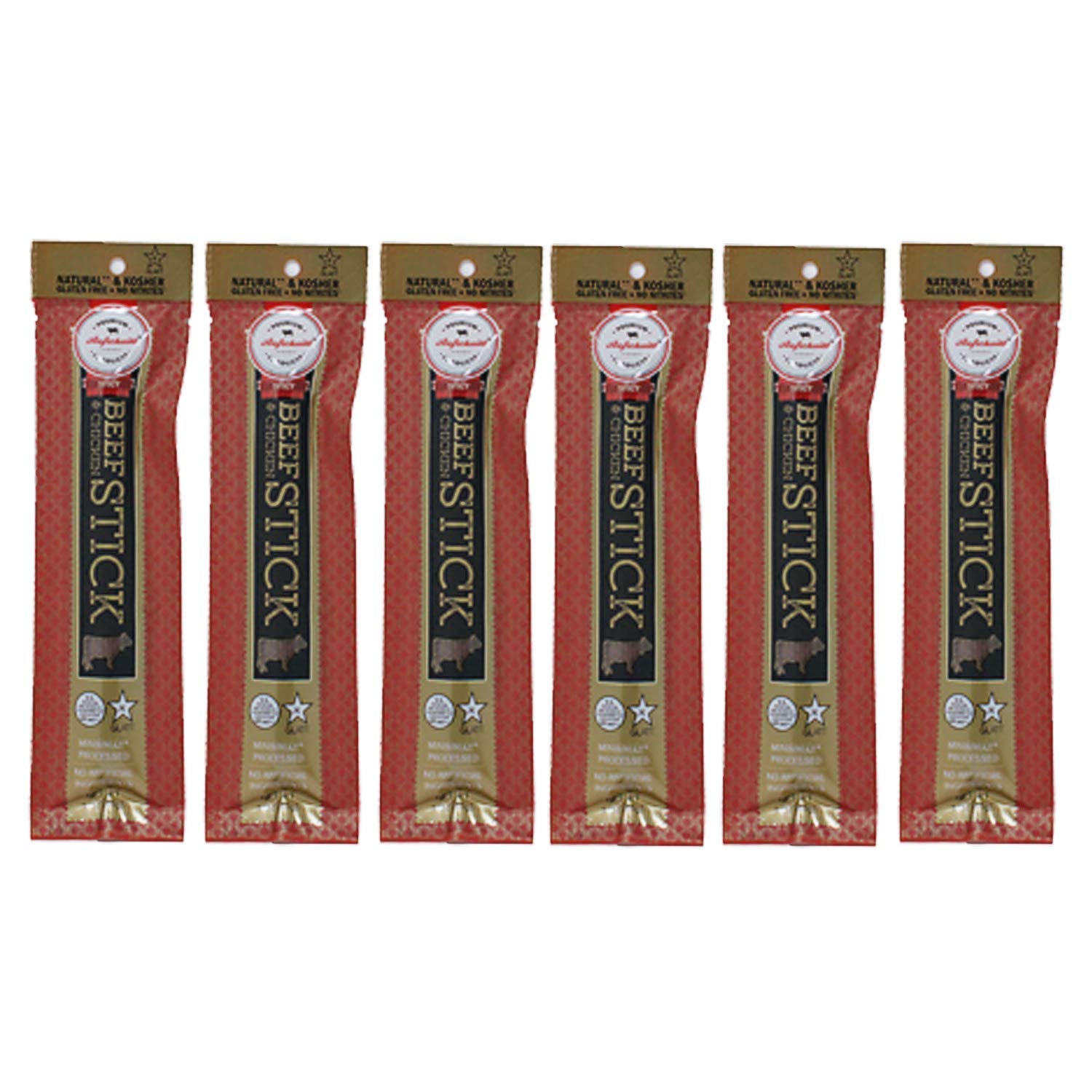 Aufschnitt Grass Fed Beef Jerky Sticks - Low Sodium, Certified Kosher - Made in USA - Keto Friendly - 6 Pack, Spicy