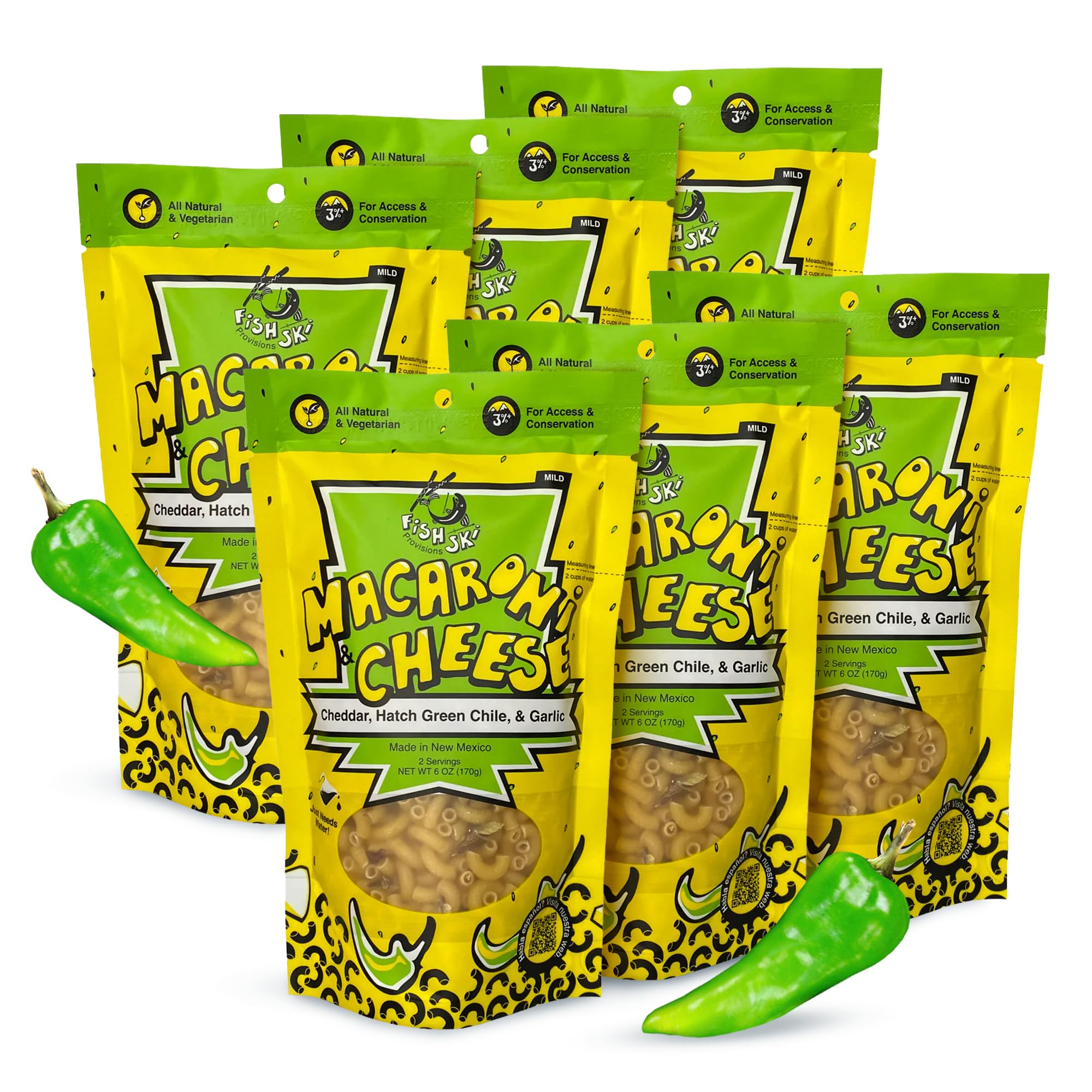 FishSki 170g Hatch Green Chile with Cheddar Macaroni and Cheese (6 x 6oz Packs)