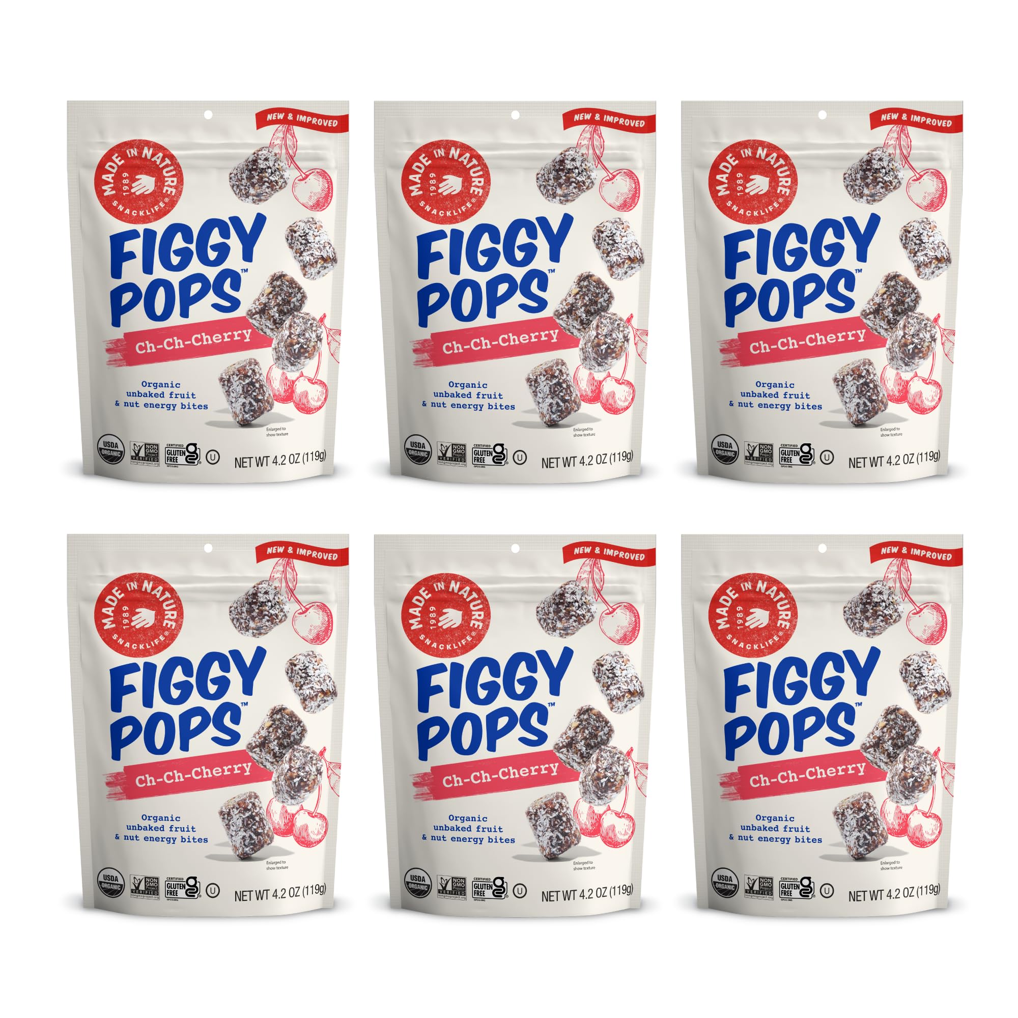 Made In Nature Organic Figgy Pops, Ch-Ch-Cherry, 4.2 Ounce (Pack of 6) – Unbaked Fruit & Nut Energy Bites, Non-GMO, Gluten Free, Vegan
