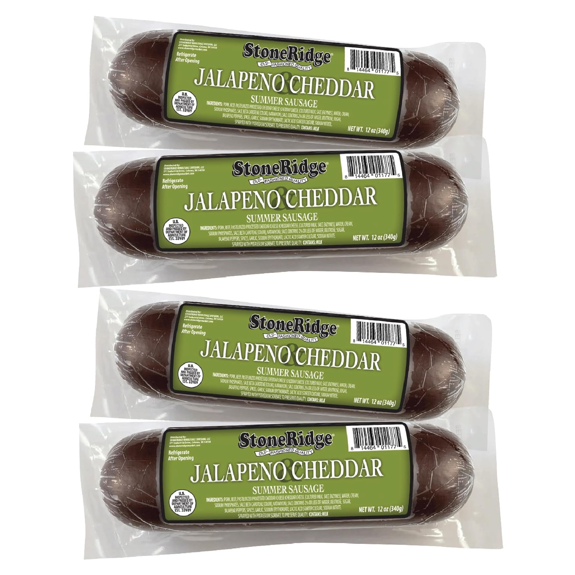 StoneRidge Old Fashioned Summer Sausage, Jalapeno Cheddar, 12 oz, 4 Pack