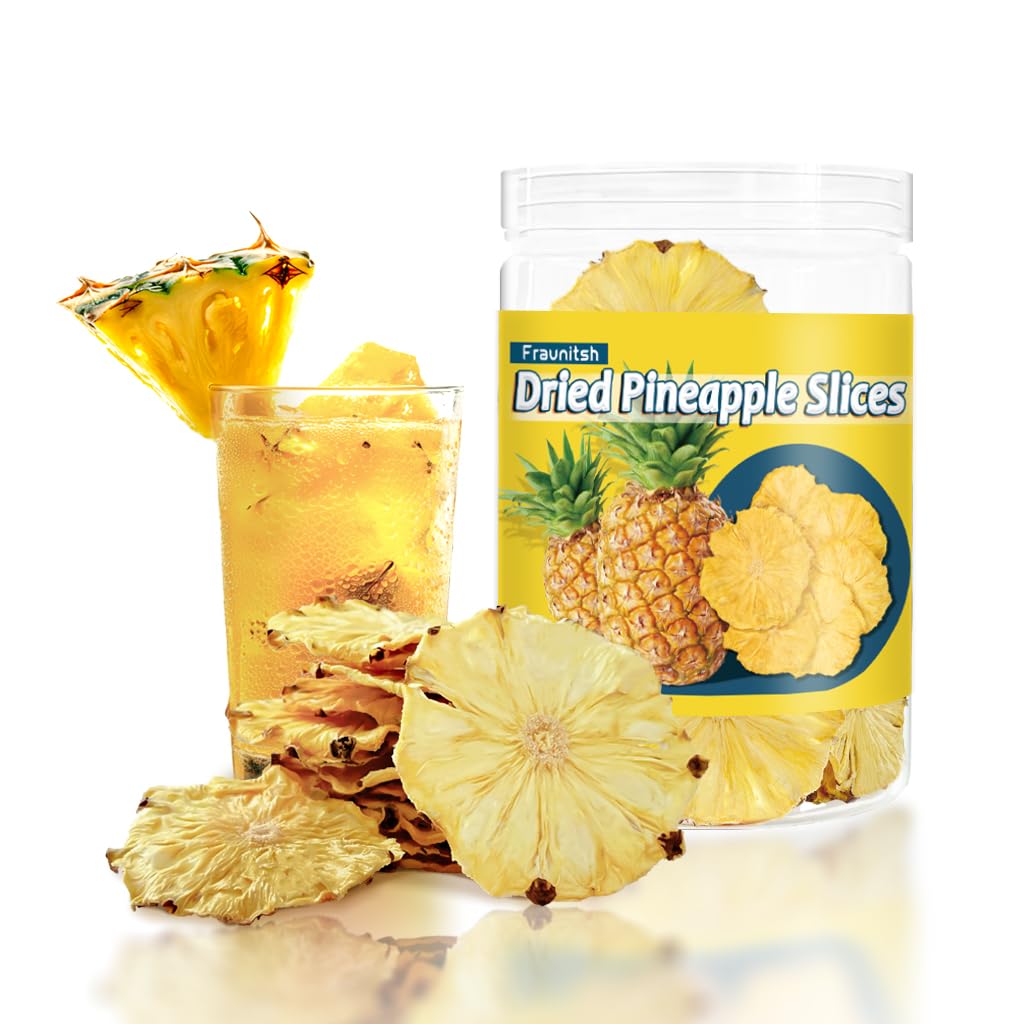 Fraunitsh Dried Pineapple Slices 3.17oz/ 90g, Dehydrated Pineapple Slices Flowers for Cocktails Drinks Baking Garnish, Edible Sliced Pineapple, No