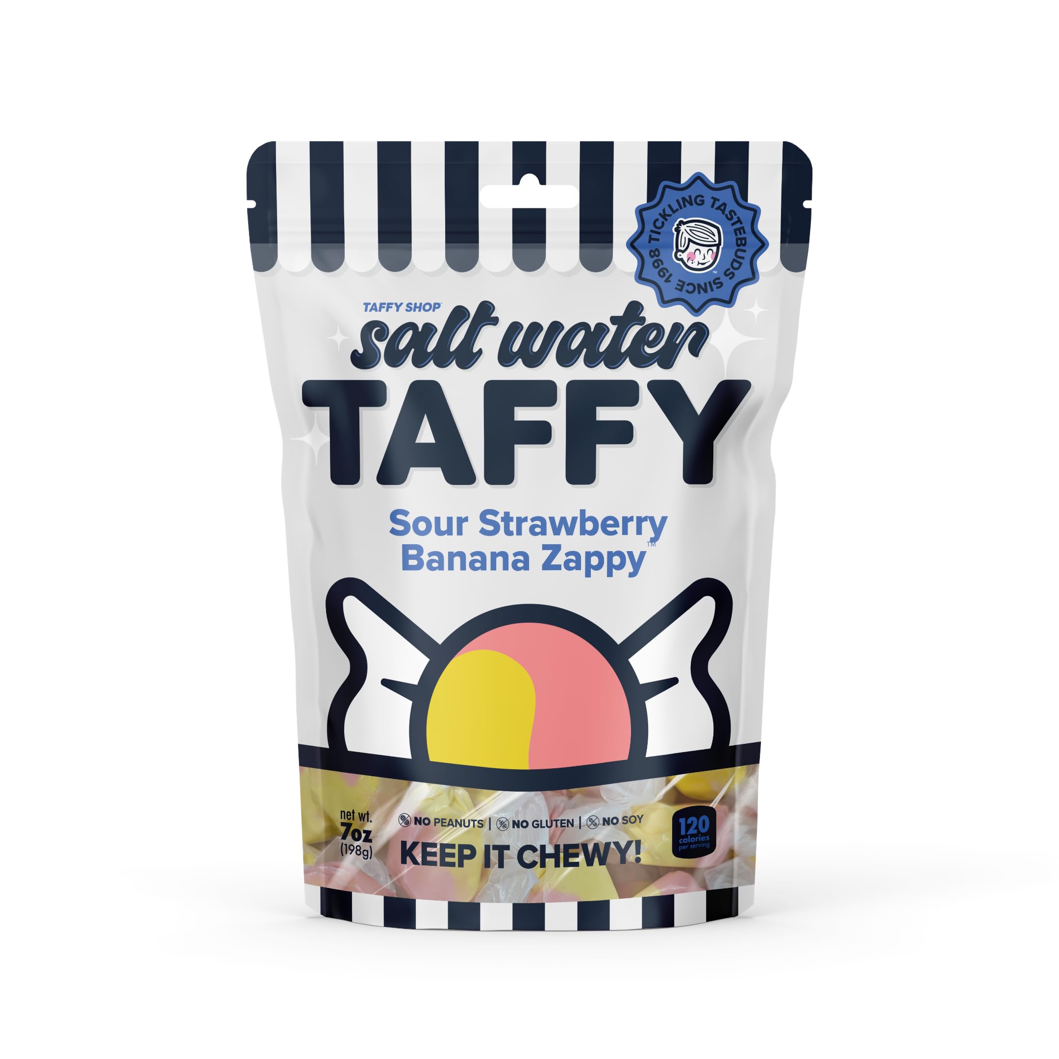 Taffy Shop Sour Strawberry Banana Zappy Salt Water Taffy Gourmet Soft Chewy Candy, Bulk Sweet Snack, Fresh Gift & Gluten-Free, 35 Individually Wrapped