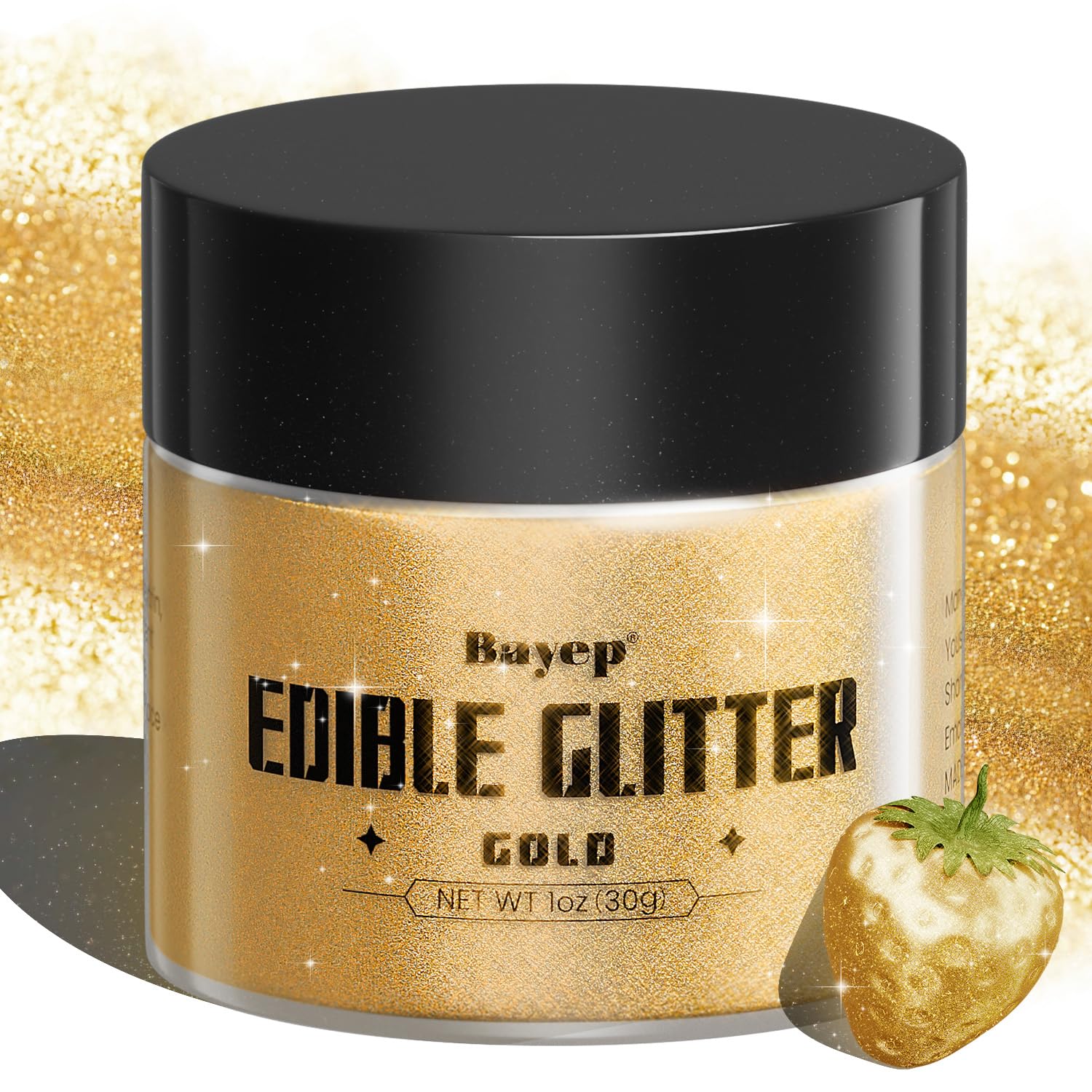 Shimmer Gold Edible Glitter For Cocktails, 30g Edible Glitter for Drinks, Luster Dust Edible for Cake, Wedding Birthday Holiday Party Valentines