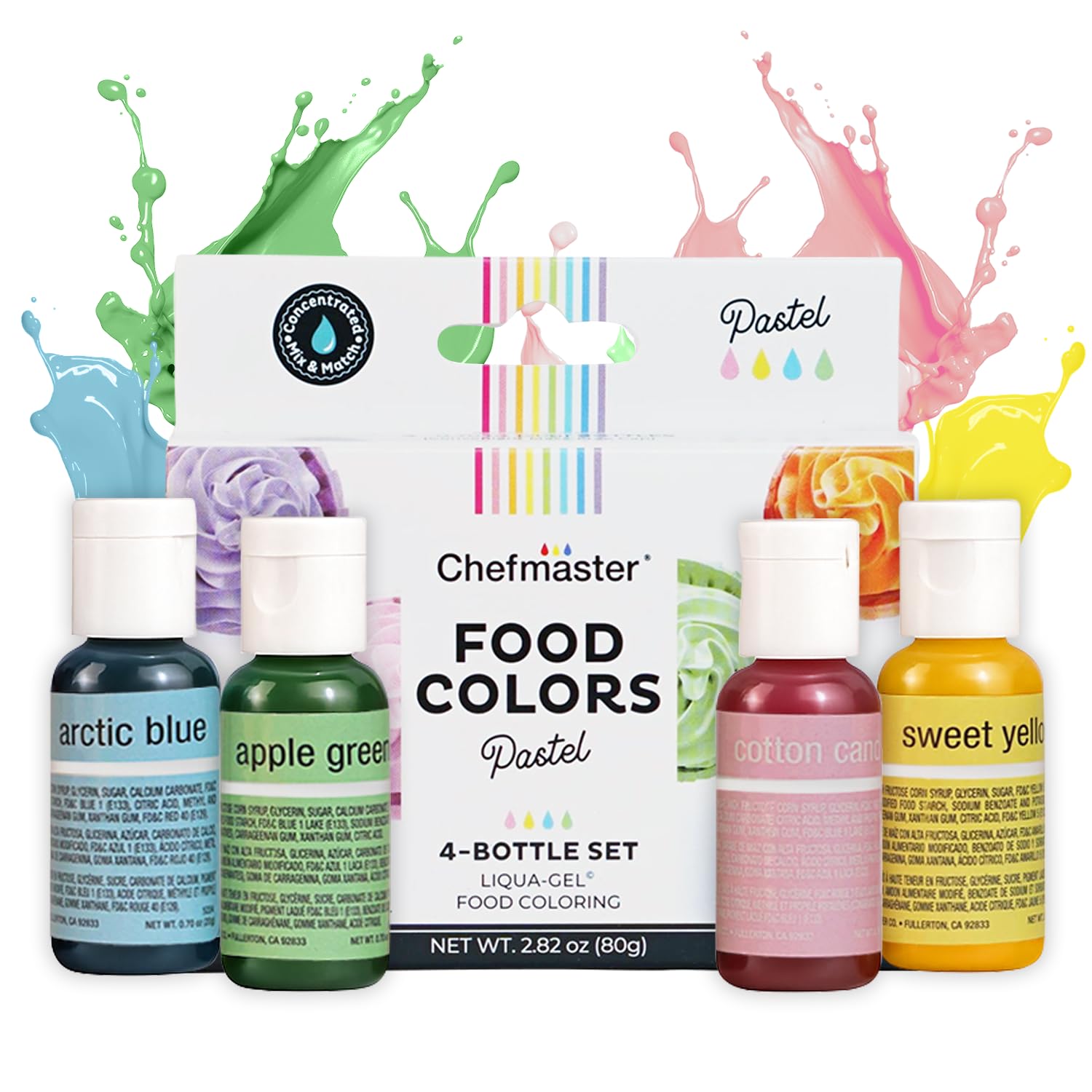 Chefmaster - Pastel Easter Colors Liqua-Gel Food Coloring Kit - Water-Based Food Coloring Gel - 4 Pack - Highly Pigmented, Create Vividly Colored