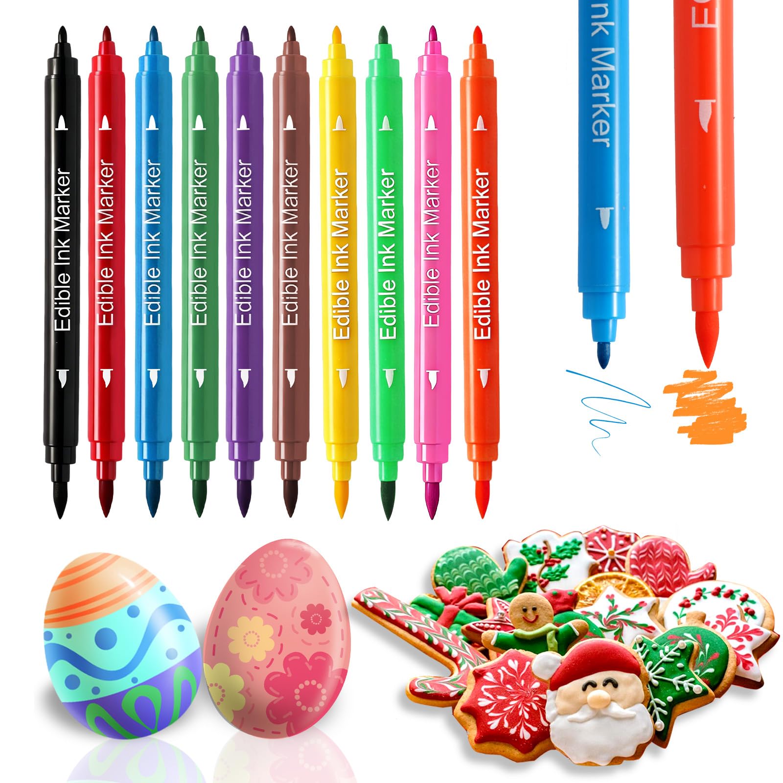 Edible Markers 10 Pcs Food Coloring Pens Fine and Thick Tip Food Grade Gourmet Writers for Cookies DIY Fondant Cakes Baking Party Decorating Drawing
